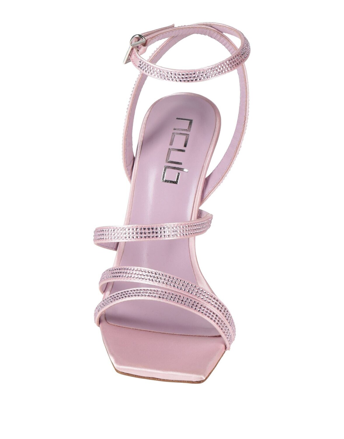 Босоножки с ремешком на щиколотке, атлас, кристаллы, одноцветное изделие с аппликациями, подкладка из кожи, ремешок на щиколотке с пряжкой, квадратный носок, каблук-шпилька, кожаная подошва, содержит нетекстильные части животного происхождения