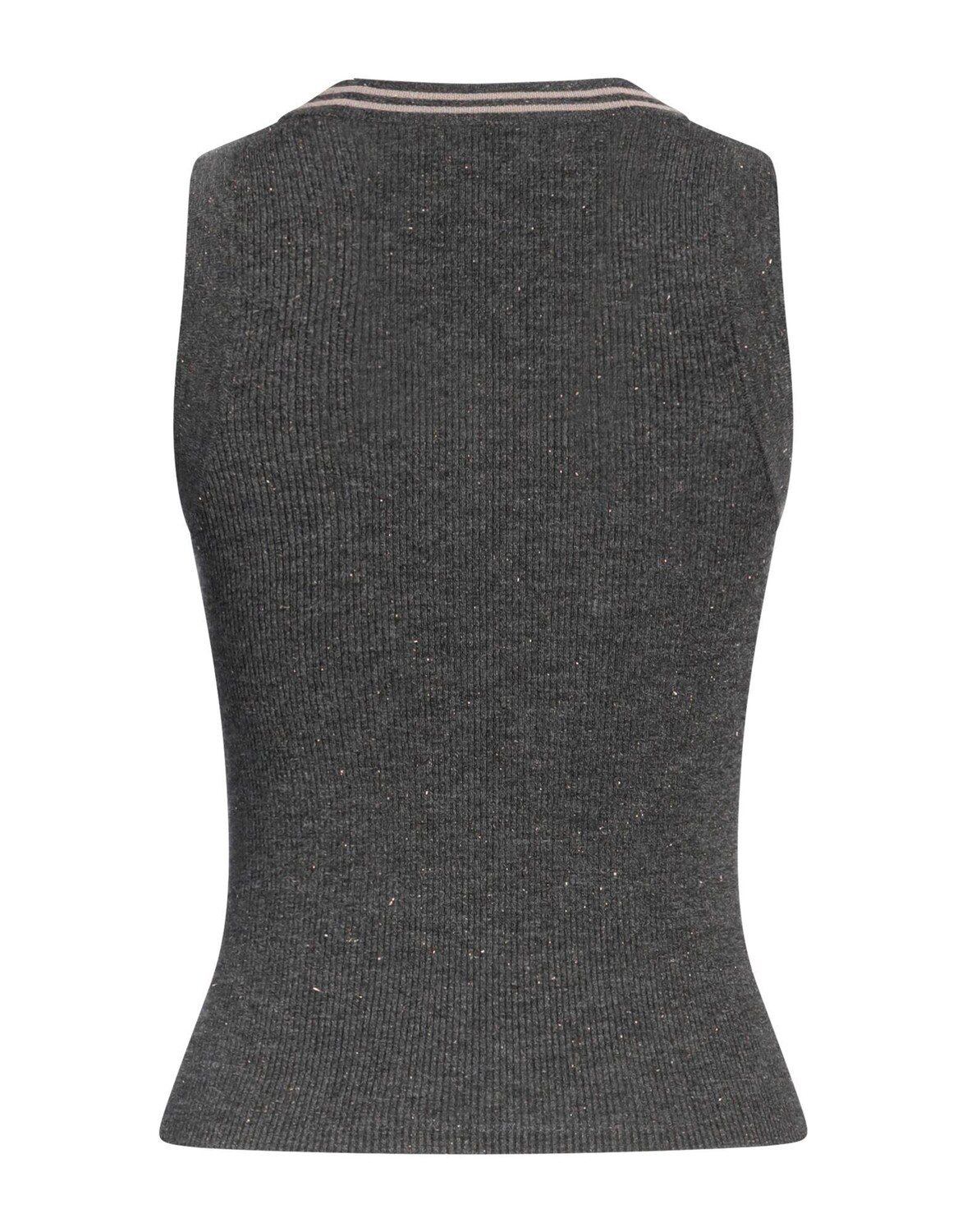 Трикотажное, металлизированное, легкий трикотаж, без аппликаций, меланжевый, V-образный вырез, без рукавов, без карманов, ручная стирка или химчистка, не отбеливать, нельзя сушить в стиральной машине