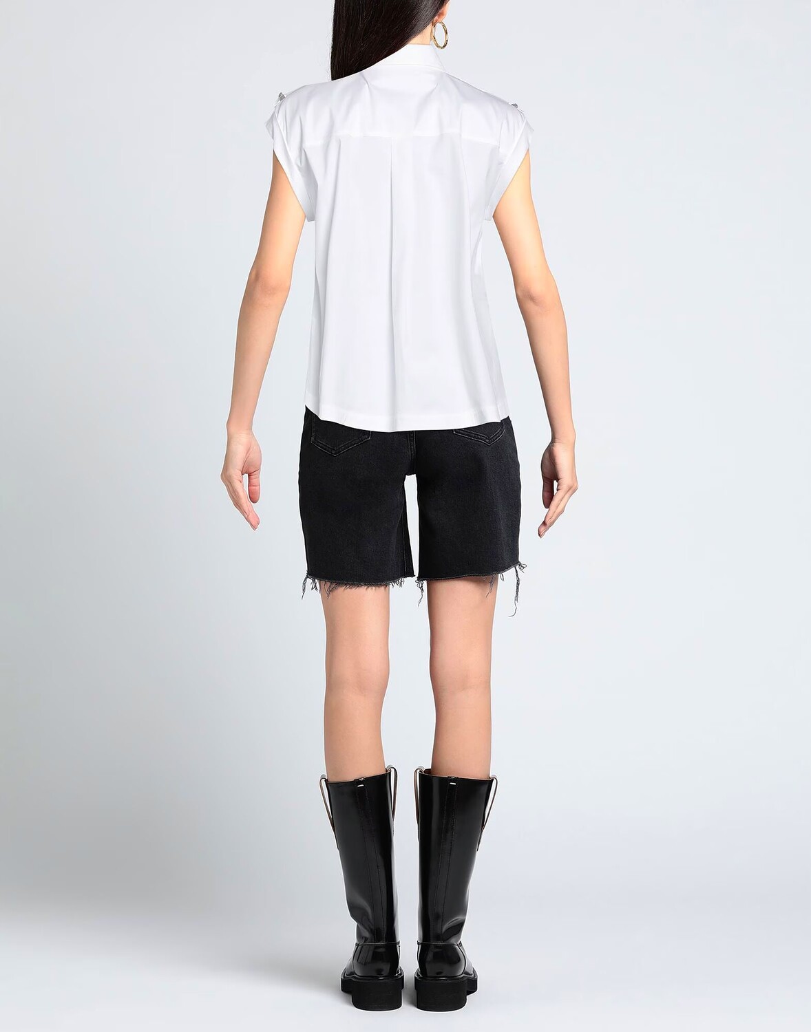 Поплин, металлические аппликации, однотонный цвет с аппликациями, воротник классический, без рукавов, застежка на пуговицы, один нагрудный карман, стрейч, содержит нетекстильные части животного происхождения, рубашка