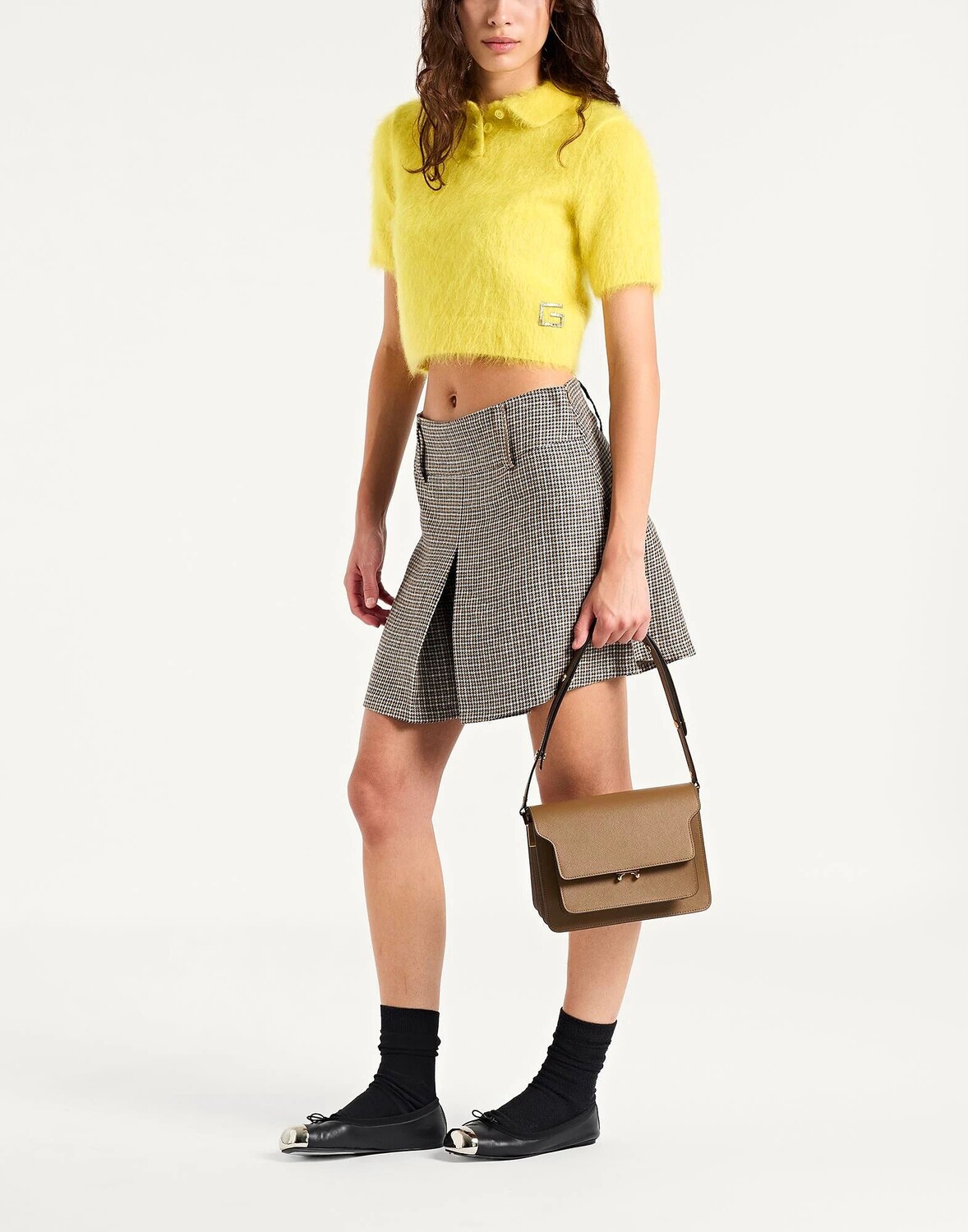 Твид, металлик, бисер, «гусиные лапки», завышенная талия, застежка-молния, без карманов, химчистка, нельзя отбеливать, нельзя сушить в стиральной машине, разделенная юбка