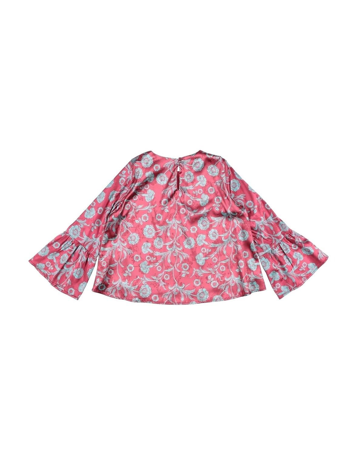 Атлас, оборки, цветочный дизайн, круглый вырез, длинные рукава, внутренняя часть на частичной подкладке, 1 пуговица, без карманов, стирка при 30°C, химическая чистка, нельзя отбеливать, нельзя сушить в стиральной машине, гладить при температуре не выше 110°C