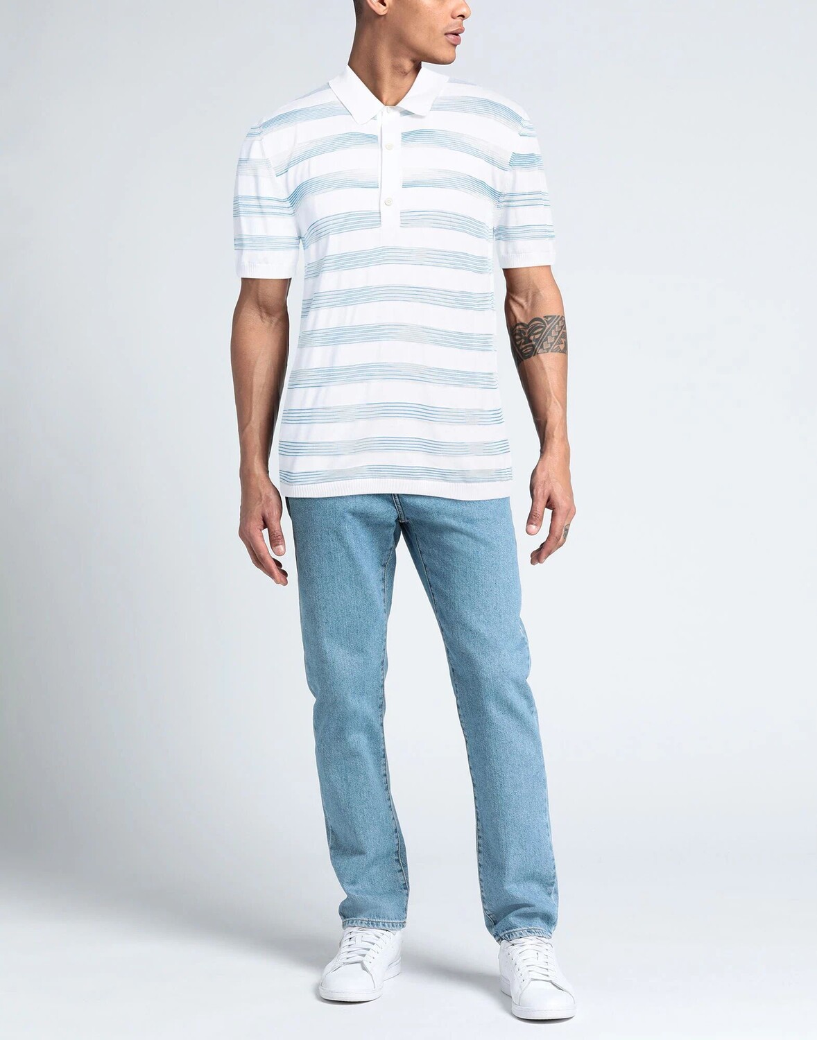 Трикотаж, легкая вязка, логотип бренда, в полоску, классический воротник, короткие рукава, застежка на пуговицы, без карманов, большой размер