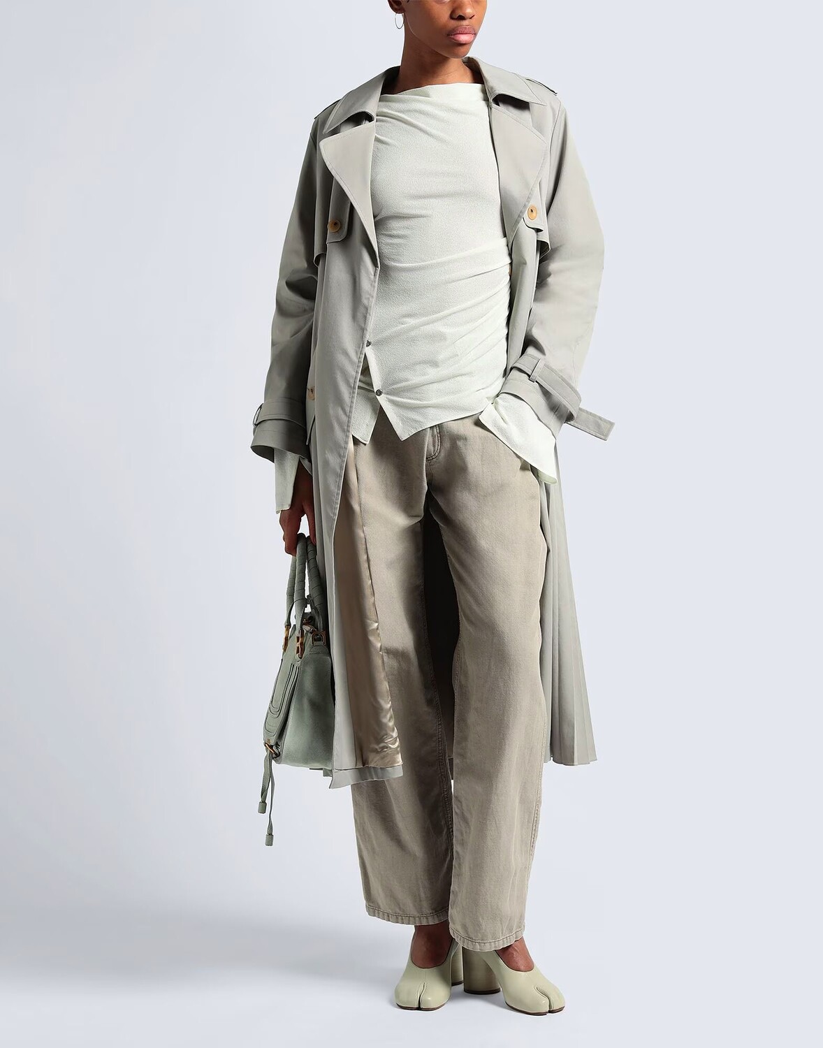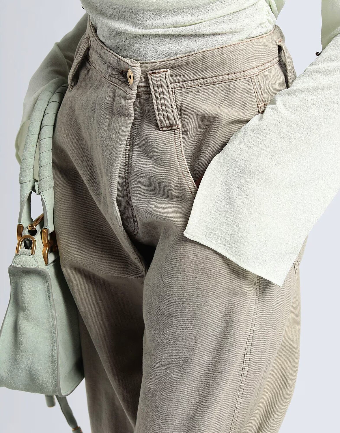 Габардин, логотип бренда, одноцветное изделие, завышенная талия, прямой крой, стандартный крой, 1 пуговица, множество карманов, содержит нетекстильные части животного происхождения, карго