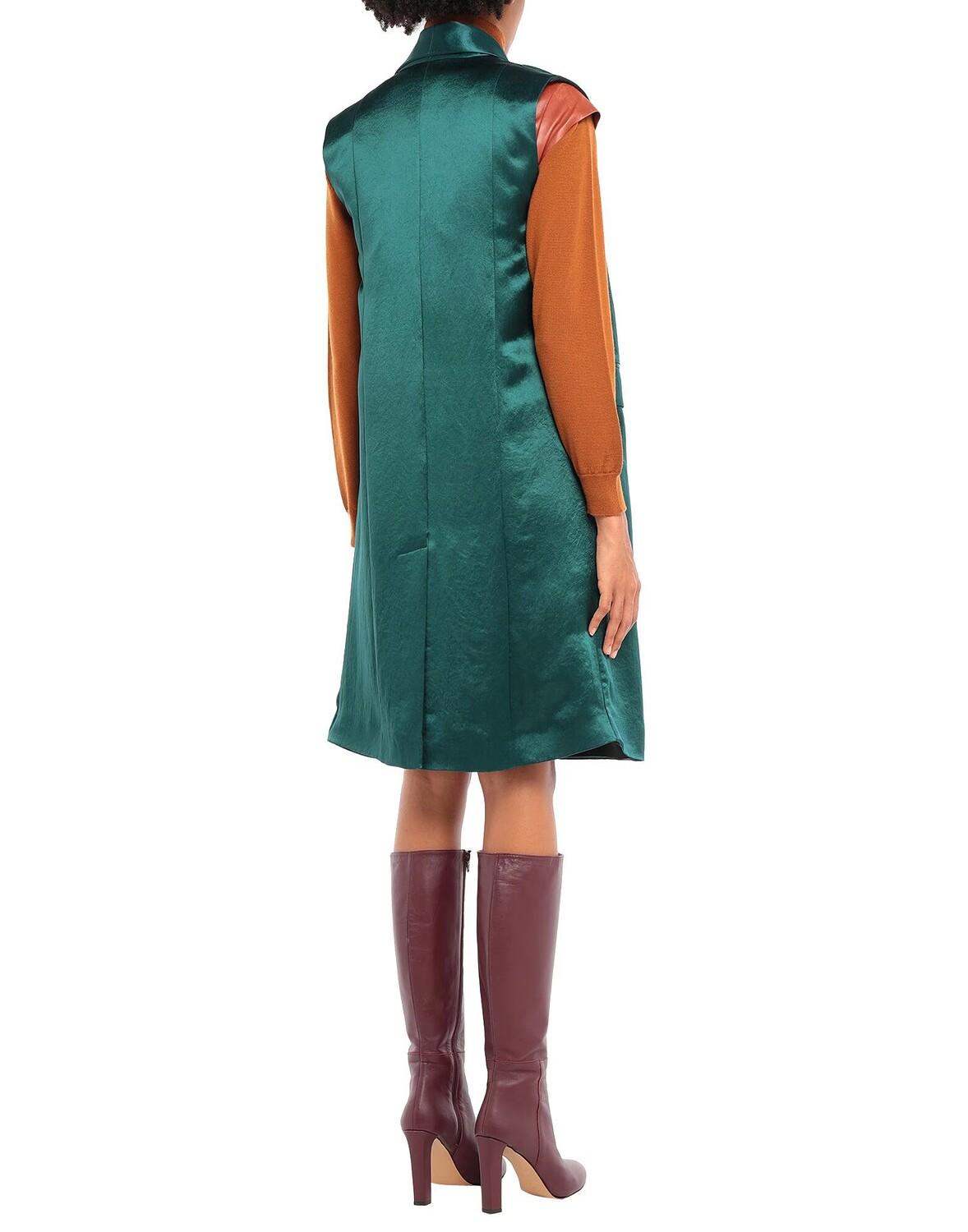 Атлас, контрастные аппликации, одноцветное изделие, двубортный, застежка на пуговицы, воротник с лацканами, множество карманов, без рукавов, разрез сзади, на подкладке, содержит нетекстильные части животного происхождения