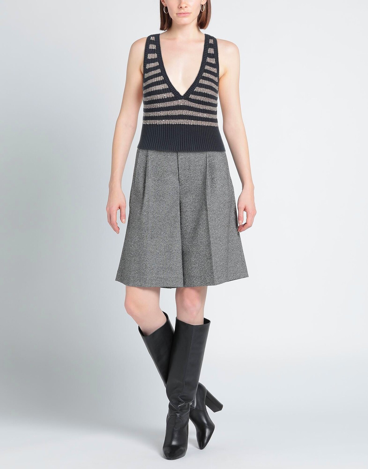 Трикотаж, средней плотности, пайетки, в полоску, меланж, v-образный вырез, без рукавов, без карманов, кроп-топ