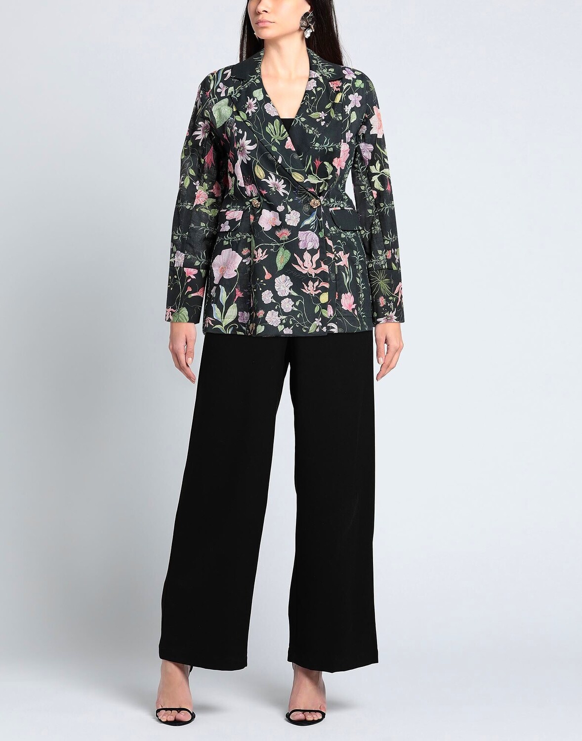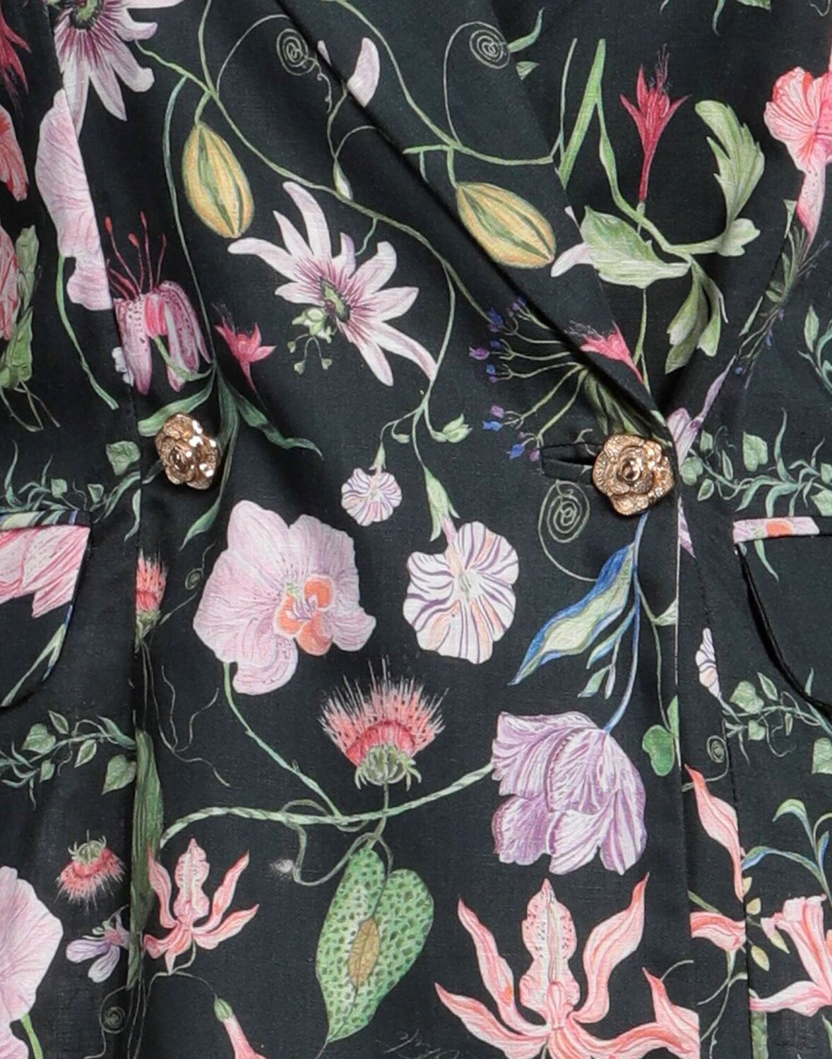 Ткань, без аппликаций, цветочный принт, воротник с лацканами, двубортный, длинные рукава, без подкладки, 2 пуговицы, множество карманов, разрез сзади, двубортный пиджак
