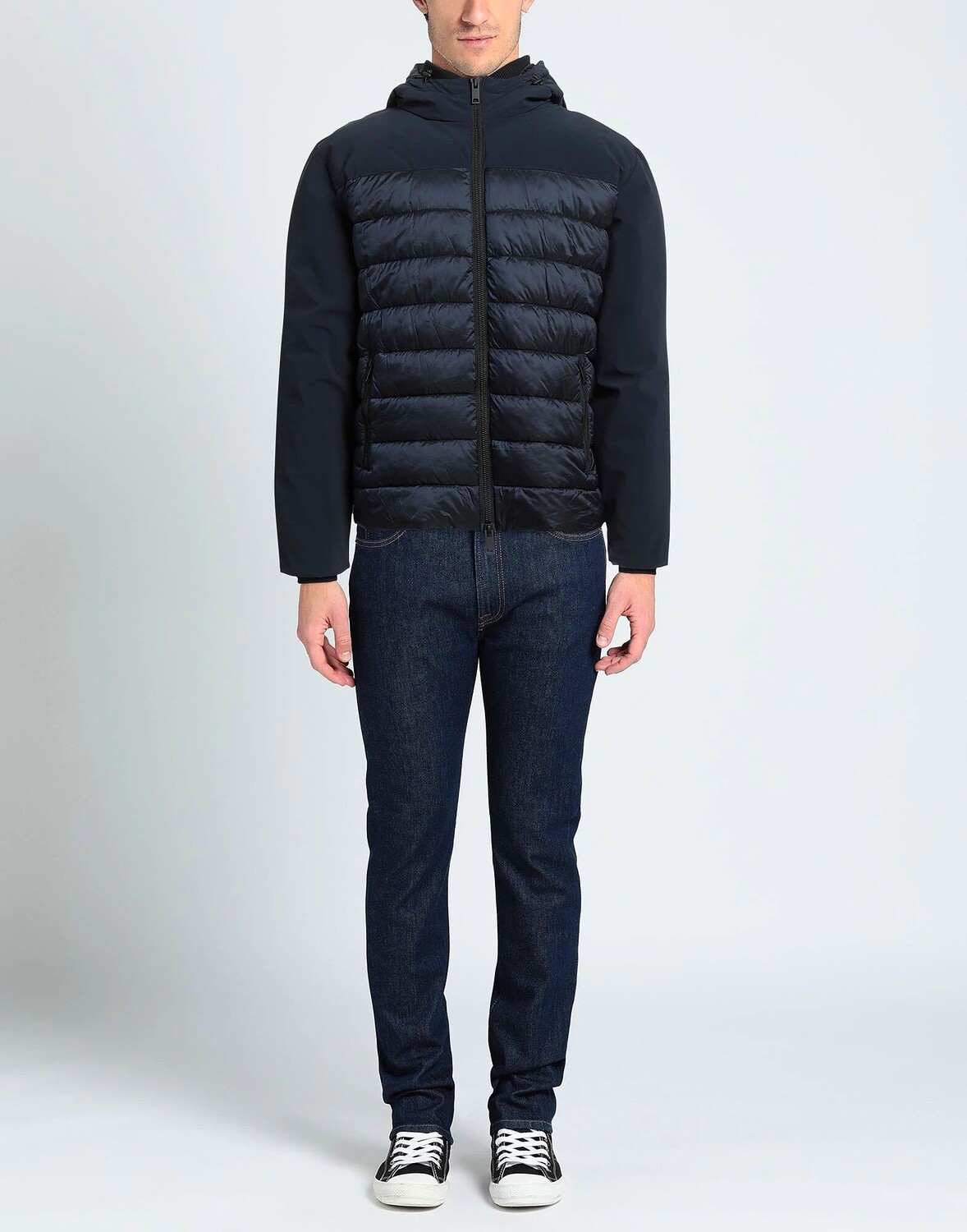 Ткань, стеганая ткань, логотип бренда, одноцветное изделие, с капюшоном, однобортный, длинные рукава, синтетический наполнитель, множество карманов, карманы на молнии, стрейч, однобортный пиджак