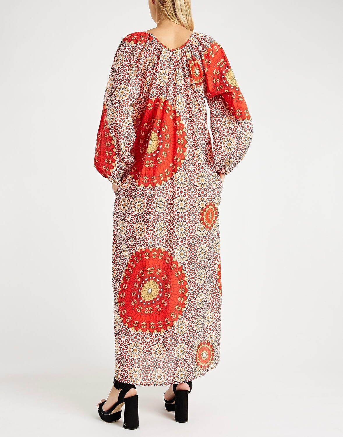 Полотняное переплетение, без аппликаций, разноцветный узор, v-образный вырез, длинные рукава, без подкладки, пуговицы, множество карманов, платье