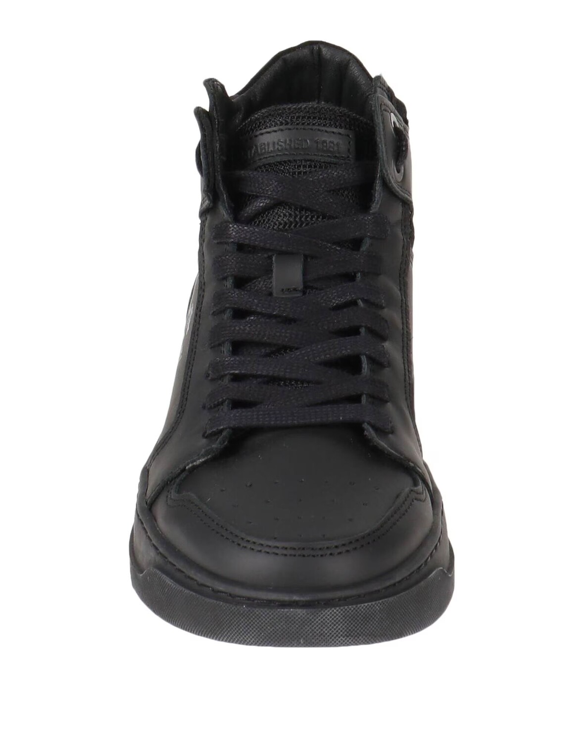 Кожа, ракушка, логотип бренда, одноцветное изделие, шнуровка, круглый носок, без каблука, резиновая подошва, содержит нетекстильные части животного происхождения, высокие кеды
