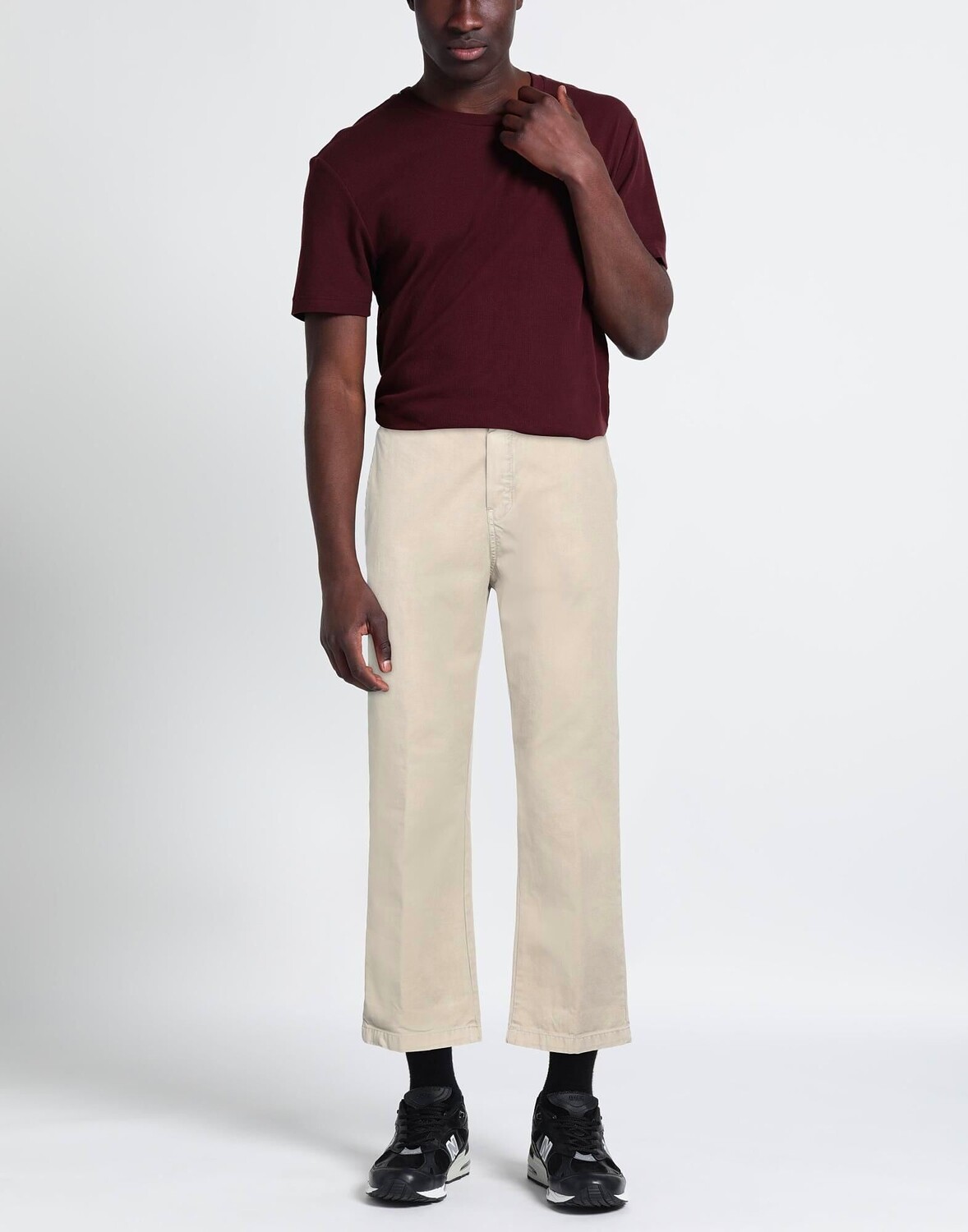 Полотняное переплетение, логотип бренда, кожаные аппликации, одноцветное изделие, средняя посадка, шлевки для ремня, зауженная брючина, стандартный крой, 1 пуговица, застежка-молния, множество карманов, содержит нетекстильные части животного происхождения, брюки чинос