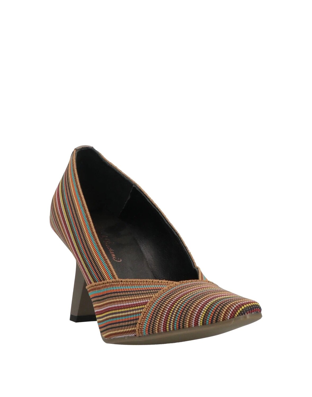 Техническая ткань, кожа, без аппликаций, полоски, разноцветный рисунок, подкладка из кожи, узкий носок, геометрический каблук, резиновая подошва, содержит нетекстильные части животного происхождения, туфли-лодочки
