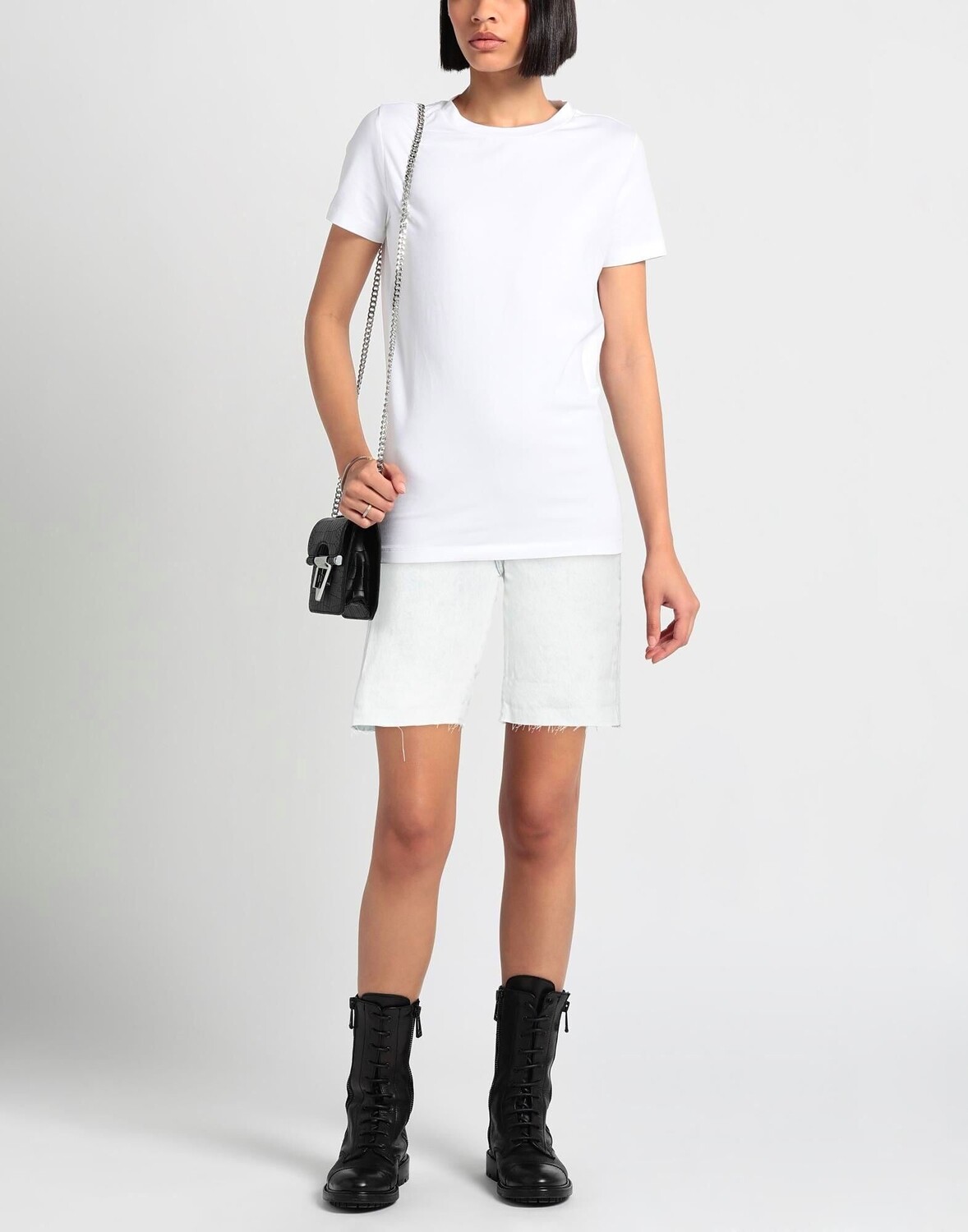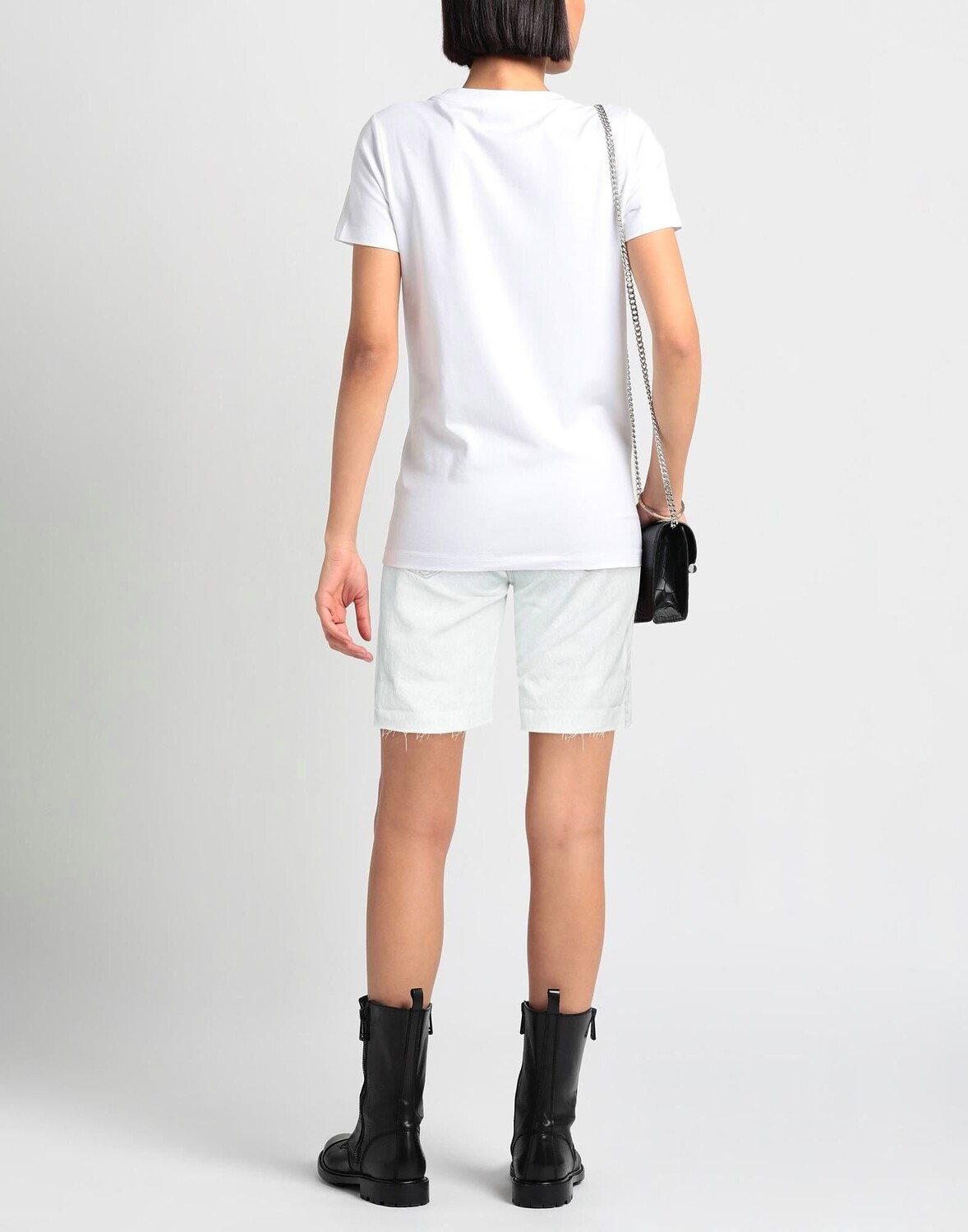 Джинсовая ткань, логотип бренда, одноцветное изделие, светлая стирка, завышенная талия, стандартный крой, застежка на пуговицы, молния, шорты
