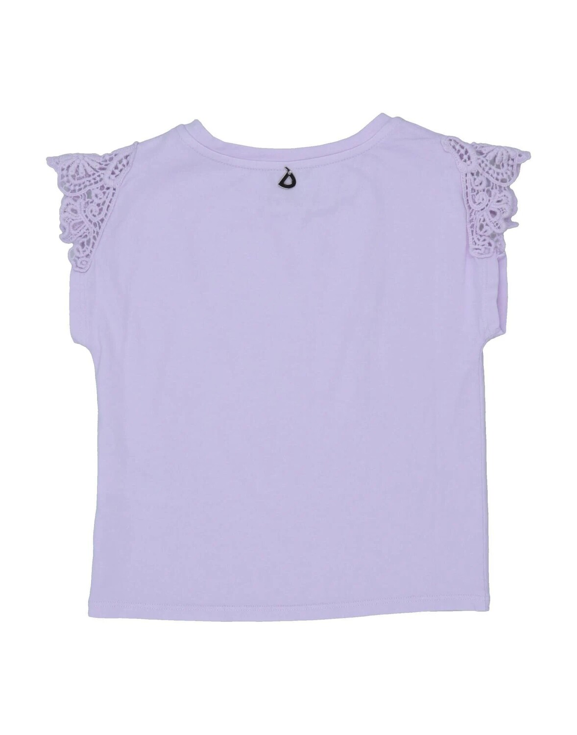 Кружево, трикотаж, логотип бренда, одноцветное изделие, круглый воротник, короткие рукава, без карманов, стирать при 30°C, не подвергать химчистке, не отбеливать, нельзя сушить в стиральной машине, гладить при температуре не выше 110°C