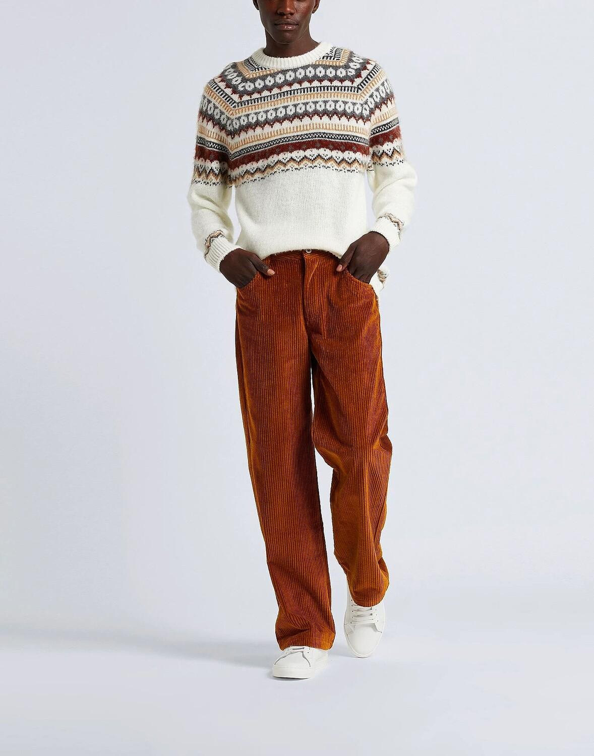 Этот свитер с длинными рукавами и ярким геометрическим узором выполнен из чрезвычайно мягкого трикотажа. Сделано в Италии, имеет круглый вырез горловины и ребристую отделку. На модели итальянский размер M/48.