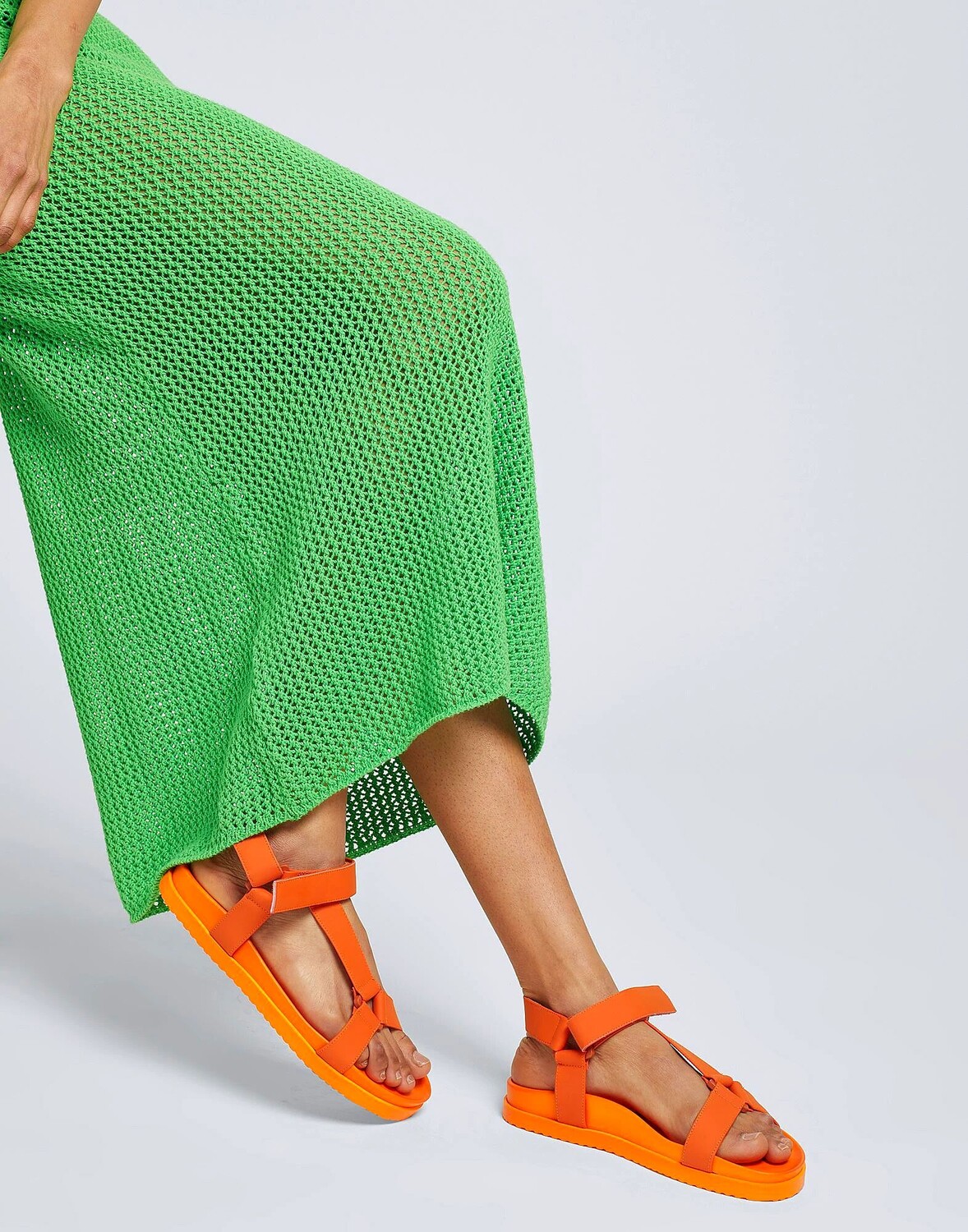 Эти сандалии, изготовленные в Италии, сочетают в себе легкость и комфорт и идеально подходят для лета. Они с закругленным носком, из ткани с покрытием, на подкладке внутри, резиновой подошвой и застежкой-липучкой.