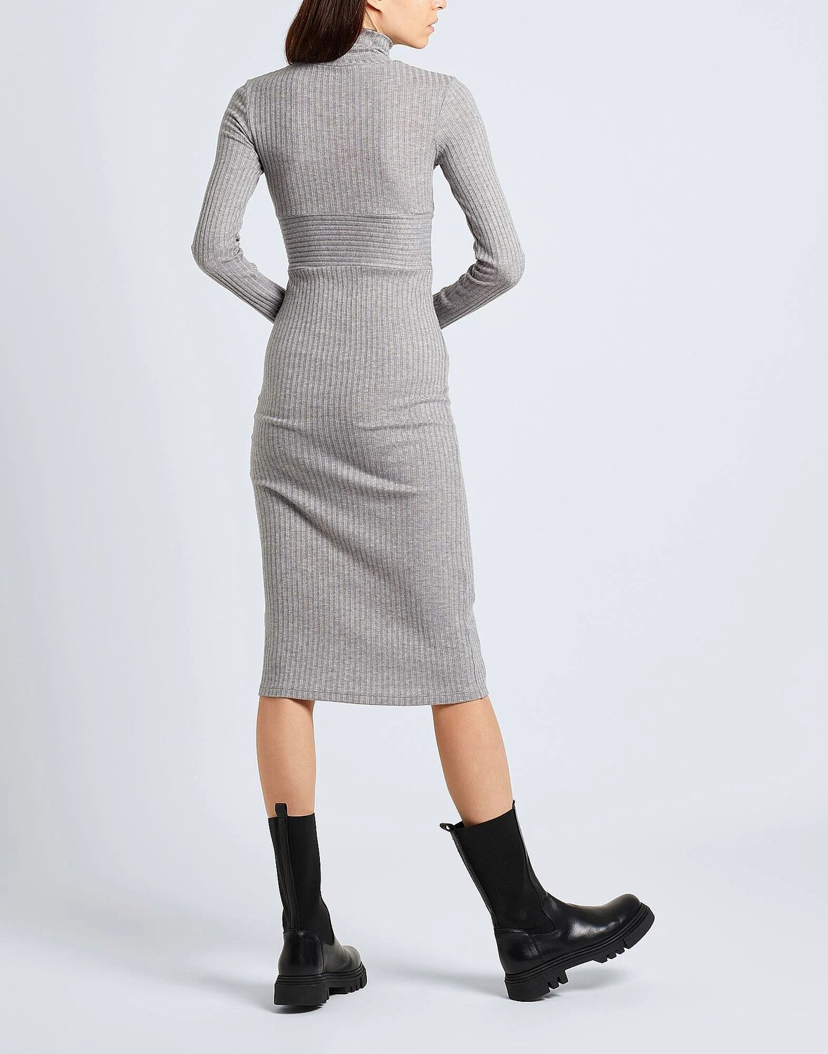 Это платье миди с длинными рукавами выполнено из легкого трикотажа и плотно облегает талию, не жертвуя при этом комфортом. Сделано в Италии, с высоким воротником и изысканной вертикальной ребристостью, придающей изделию текстуру и интерес. Доступно больше цветов. Рост модели 5 футов 11 дюймов/180 см, на ней итальянский размер S/40.