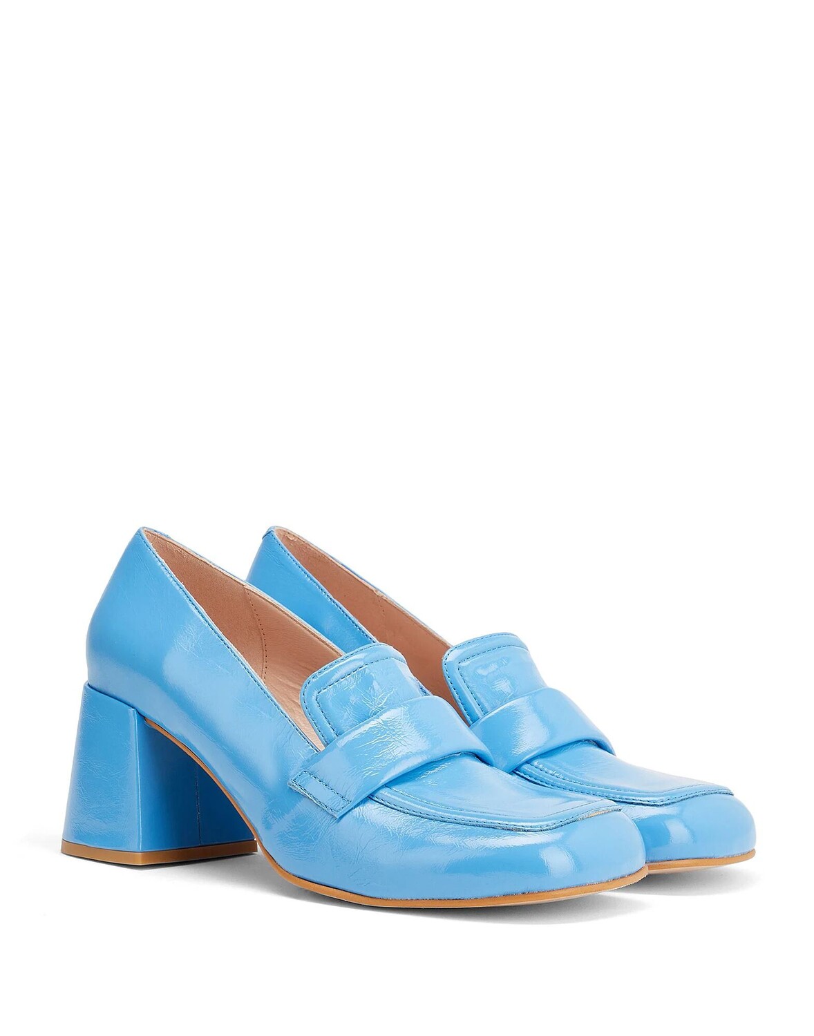 Кожа, эффект лака, без аппликаций, одноцветное изделие, кожаная подкладка, квадратный носок, геометрический каблук, обтянутый каблук, резиновая подошва, содержит нетекстильные части животного происхождения, мокасины