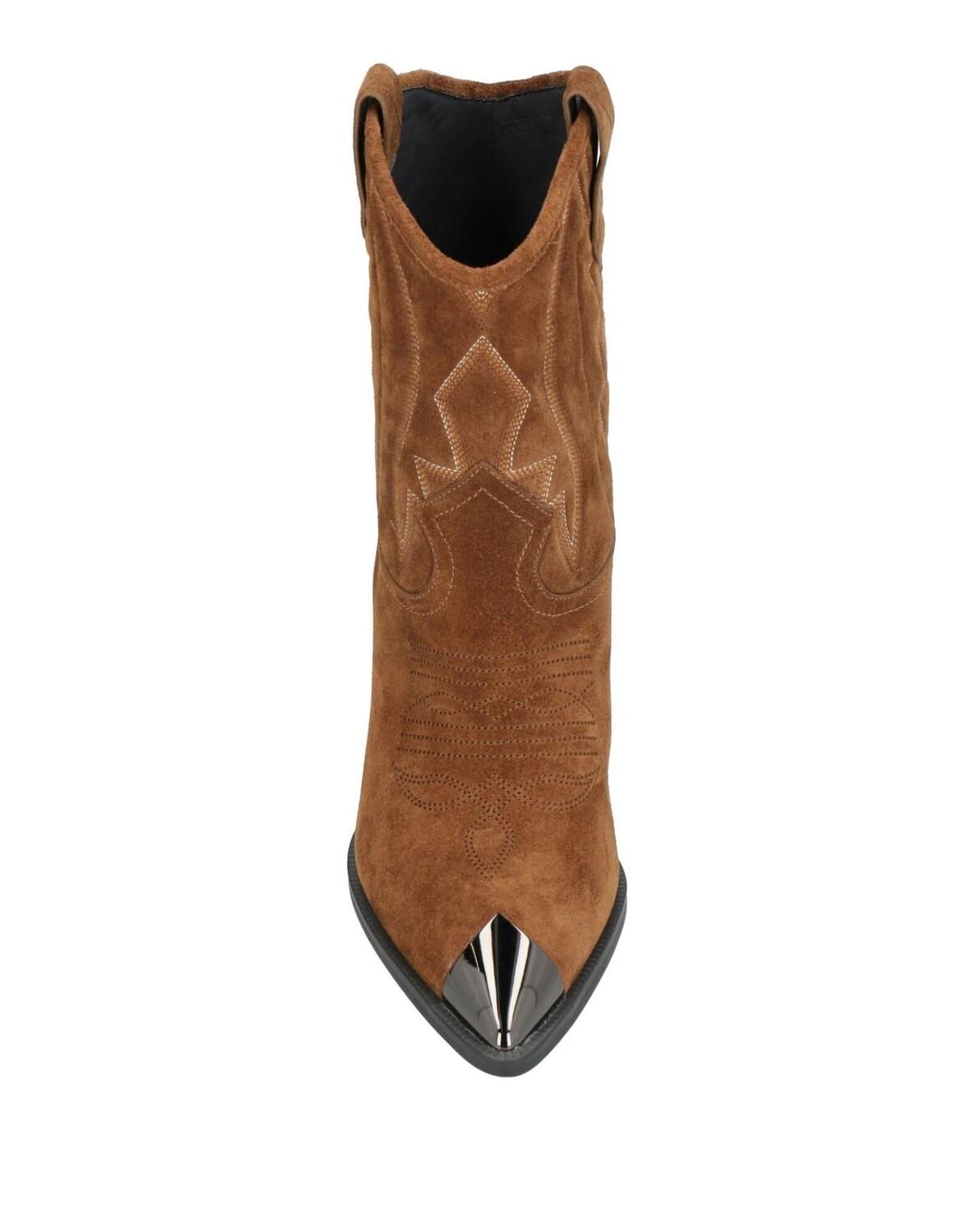 Ботильоны в стиле вестерн, эффект замши, металлические аппликации, вышивка, однотонный цвет с аппликациями, внутри кожа, эластичные вставки, острый носок, кубинский каблук, подошва кожа/резина, содержит нетекстильные части животного происхождения