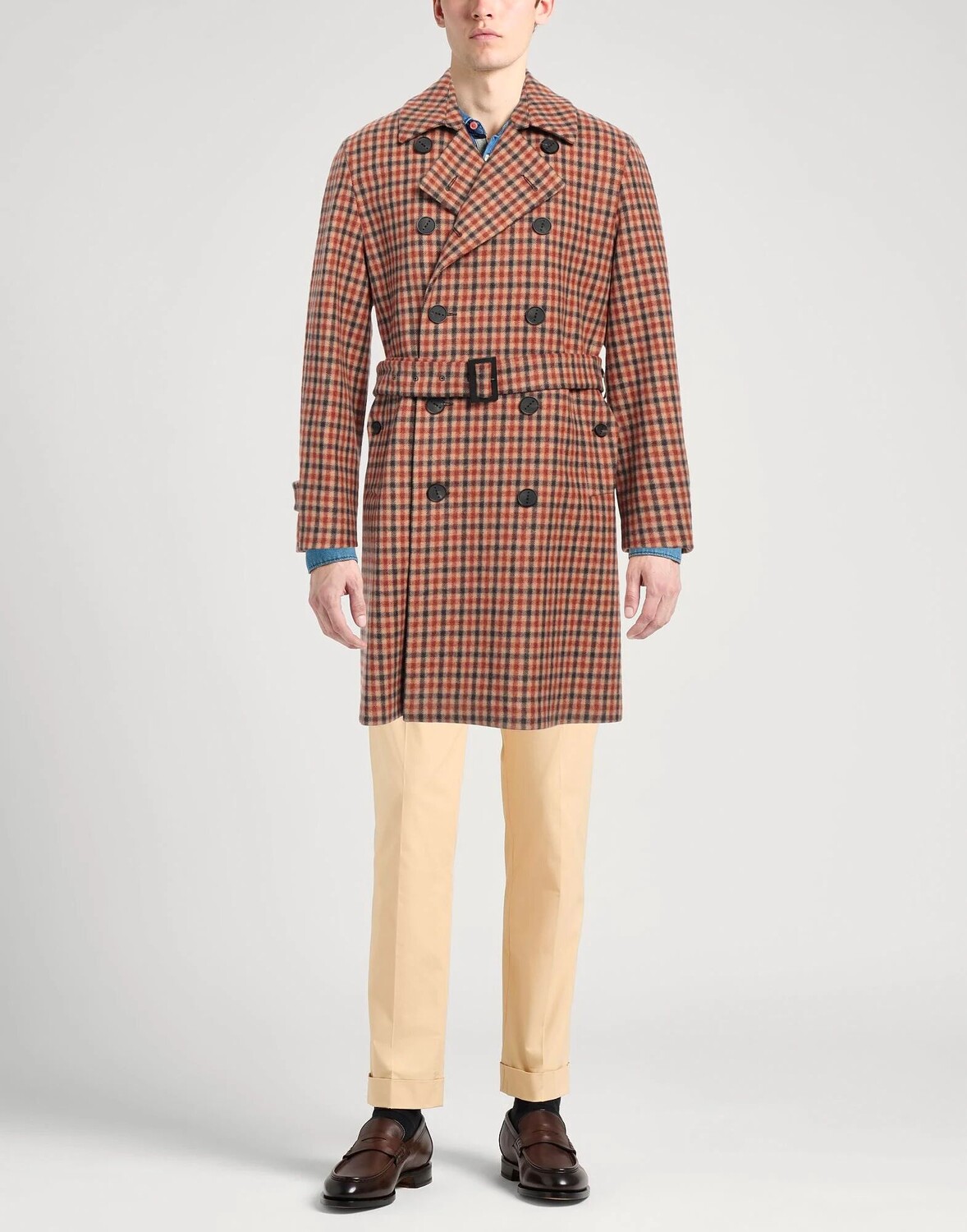 Пальто с поясом, фетр, клетка, ремень, воротник с лацканами, двубортный, длинные рукава, внутри на подкладке, застежка на пуговицы, множество карманов, химчистка, нельзя сушить в стиральной машине