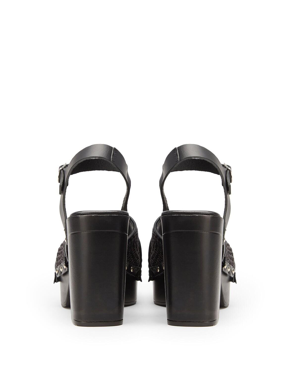 Эти босоножки из рафии с перекрестным силуэтом спереди, платформой спереди и квадратным каблуком, сделаны в Италии. Выполненные в однотонном цвете, они дополнены резиновой подошвой и регулируемым ремешком на щиколотке с пряжкой.