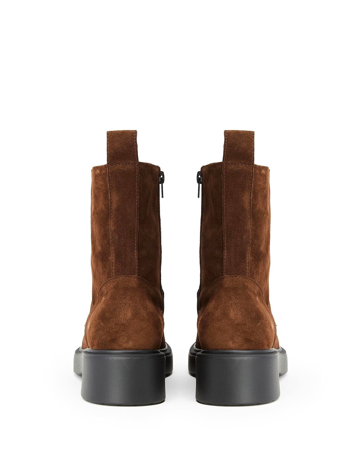 Ботильоны итальянского производства из однотонной замши. Закругленный носок и застежка-молния по бокам дополнены контрастной резиновой подошвой.