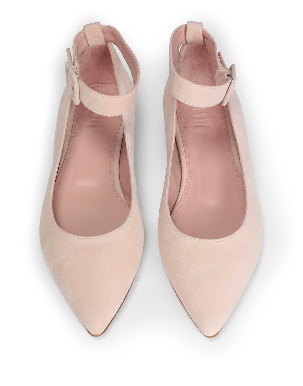 Одна пара обуви – столько способов ее носить. Эти балетки с заостренным носком и ремешком на щиколотке с пряжкой в ​​тон изготовлены в Италии из замши. Эти повседневные туфли можно сочетать с джинсами, строгими брюками или платьем миди. Доступно больше цветов.