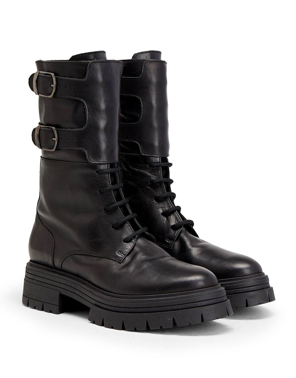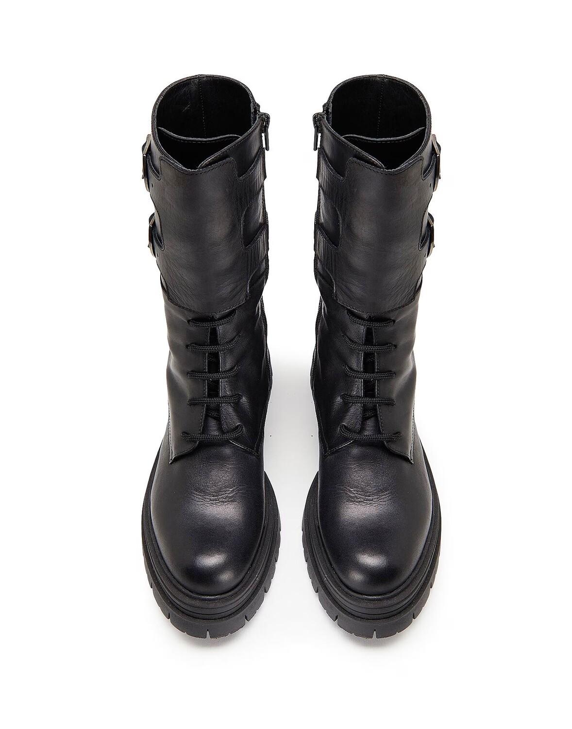 Эти однотонные армейские ботинки, созданные для самого холодного сезона, имеют закругленный носок и верх из натуральной кожи со шнуровкой. Итальянский дизайн включает подошву с выступами, боковую молнию и характерную застежку с двойной пряжкой над лодыжкой. Кожа этого изделия была произведена на сертифицированном кожевенном заводе, целью которого является снижение воздействия на окружающую среду на каждом этапе производства.