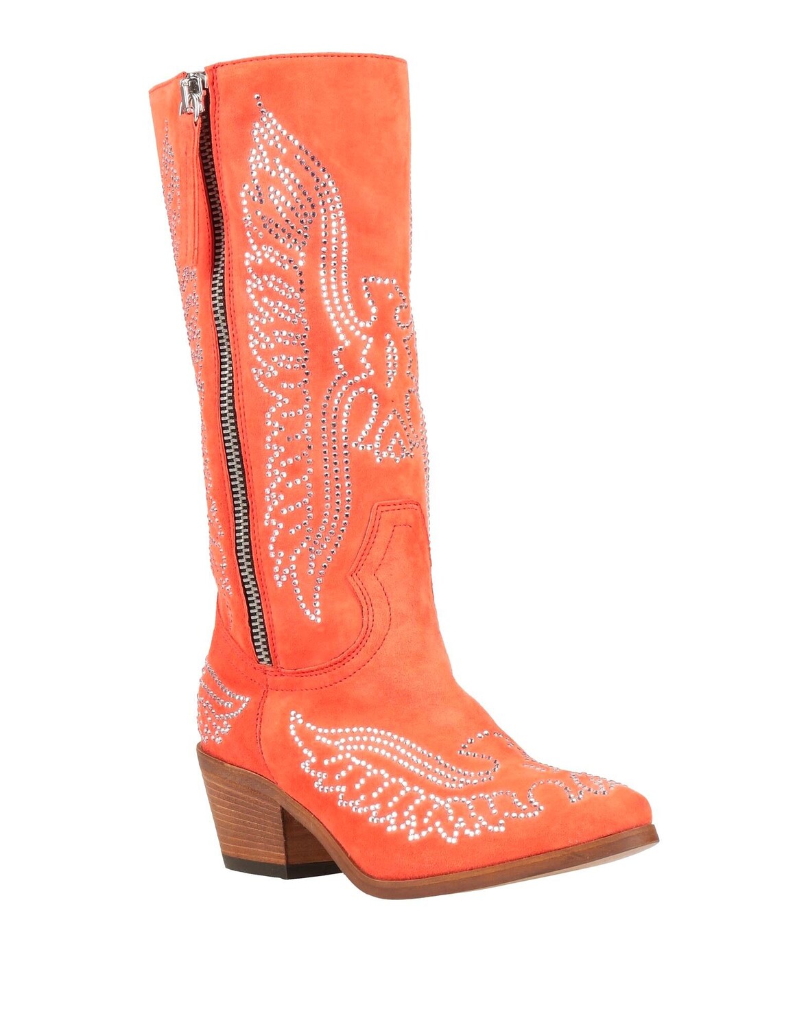 Сапоги в стиле вестерн, кожа, эффект замши, стразы, двухцветный узор, подкладка кожа, застежка-молния, круглый носок, квадратный каблук, деревянный каблук, резиновая подошва, содержит нетекстильные части животного происхождения