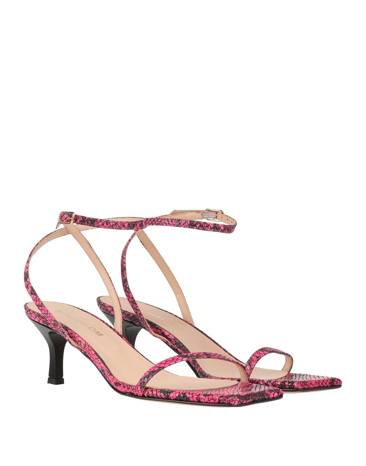 Ткань с покрытием, принт под змеиную кожу, без аппликаций, двухцветное изображение, кожаная подкладка, ремешок с пряжкой на щиколотке, эластичные выступы, квадратный носок, шипованный каблук, резиновая подошва, сандалии с ремешком на щиколотке