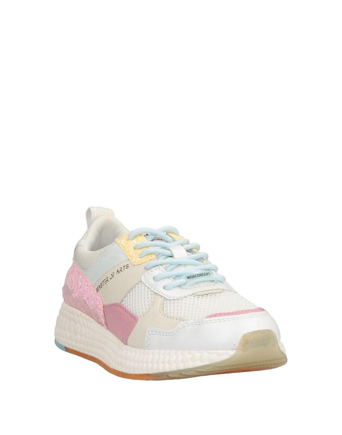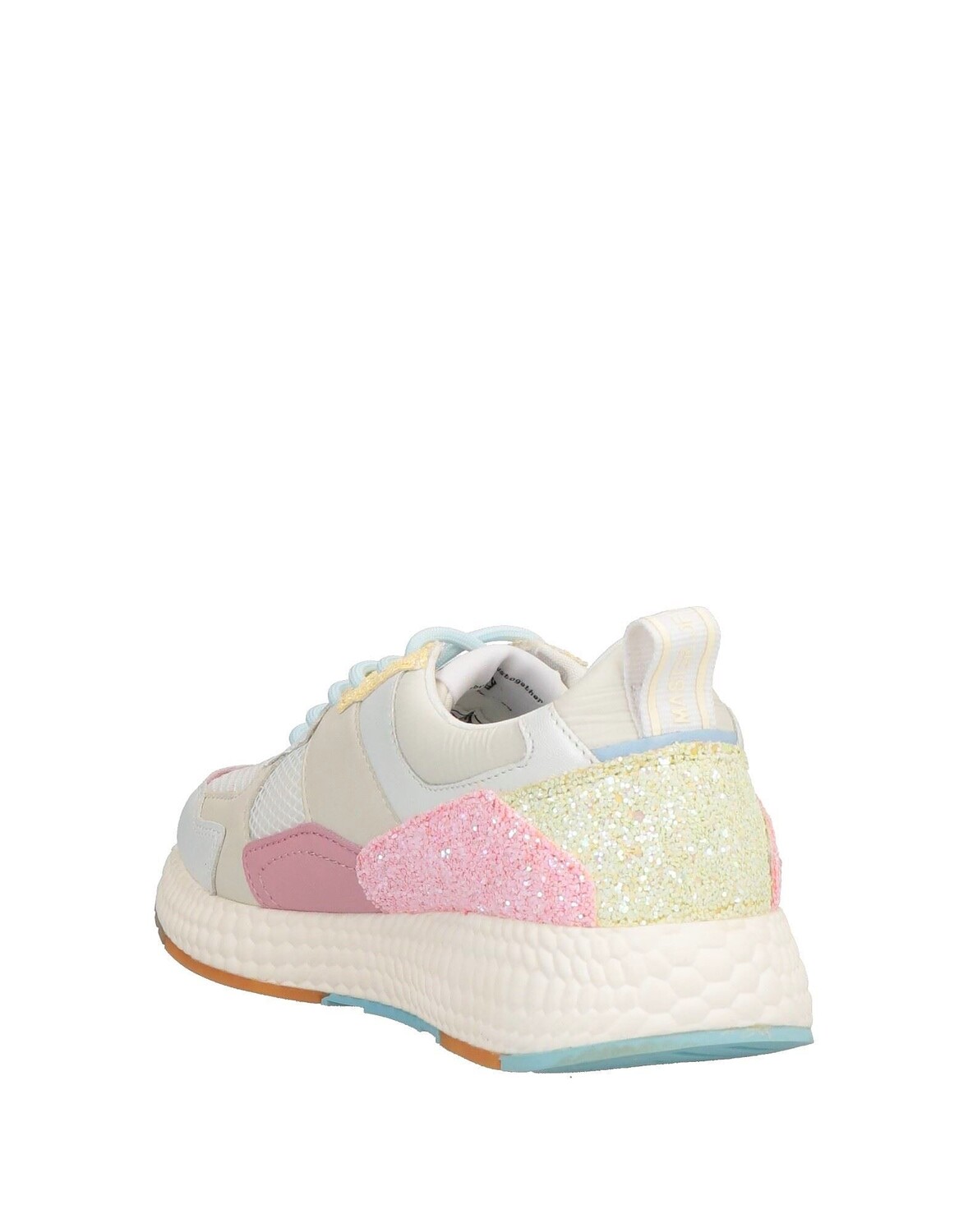 Ткань акваланга, кожа, логотип бренда, блестки, разноцветный рисунок, внутри на подкладке, шнуровка, скругленный носок, без каблука, резиновая подошва с тиснением, содержит нетекстильные части животного происхождения, производительная модель