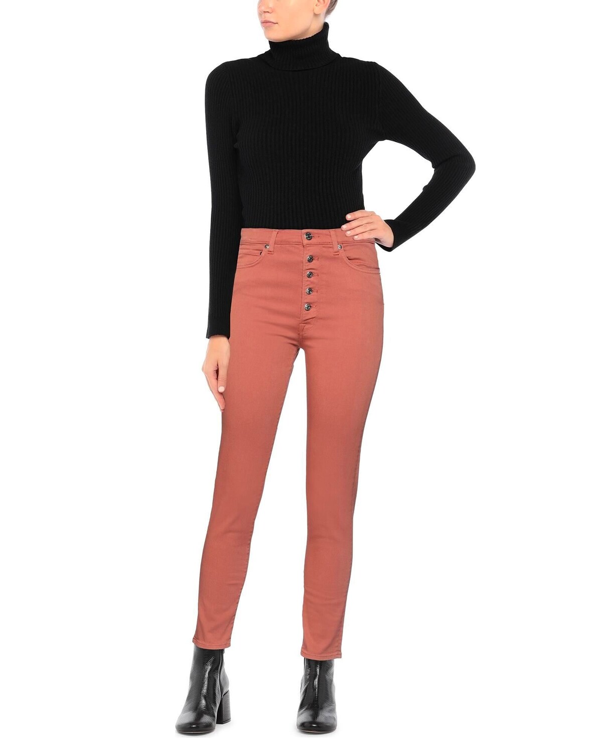 Джинсовая ткань, кожаные аппликации, одноцветное изделие, цветная стирка, застежка спереди, завышенная талия, пуговицы, пять карманов, стрейч, содержит нетекстильные части животного происхождения