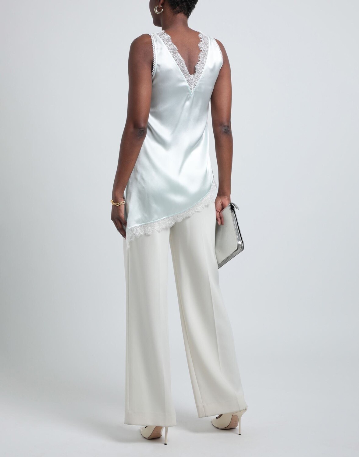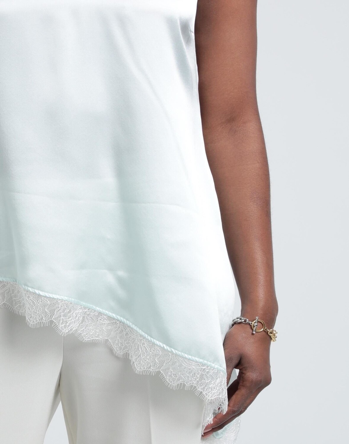 Атлас, кружево, без аппликаций, двухцветное, глубокий вырез, без рукавов, без карманов, пижамный верх