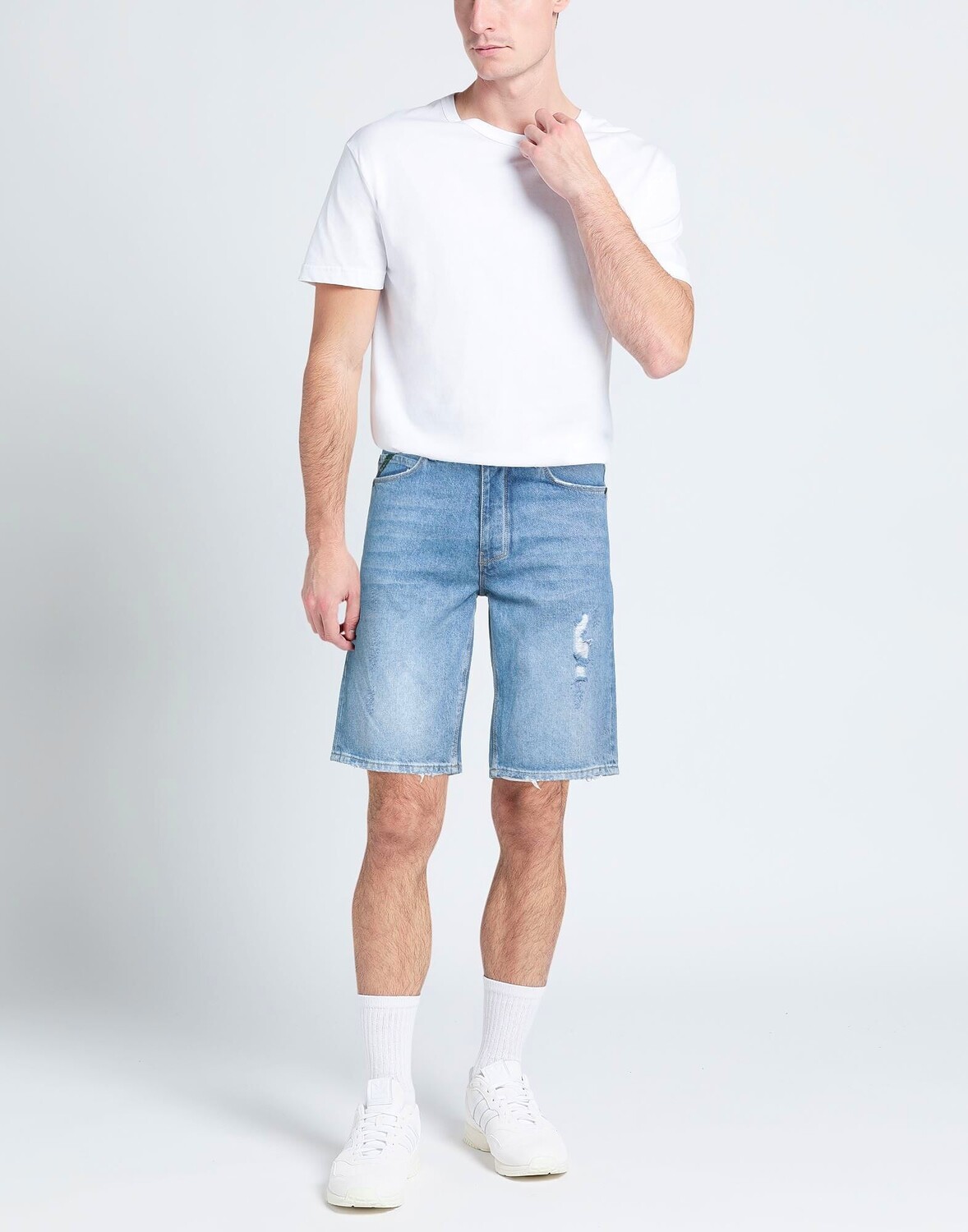 Деним, выцветший, потертый, логотип бренда, одноцветное изделие, легкая потертость, средняя посадка, петли для ремня, стандартный крой, множество карманов