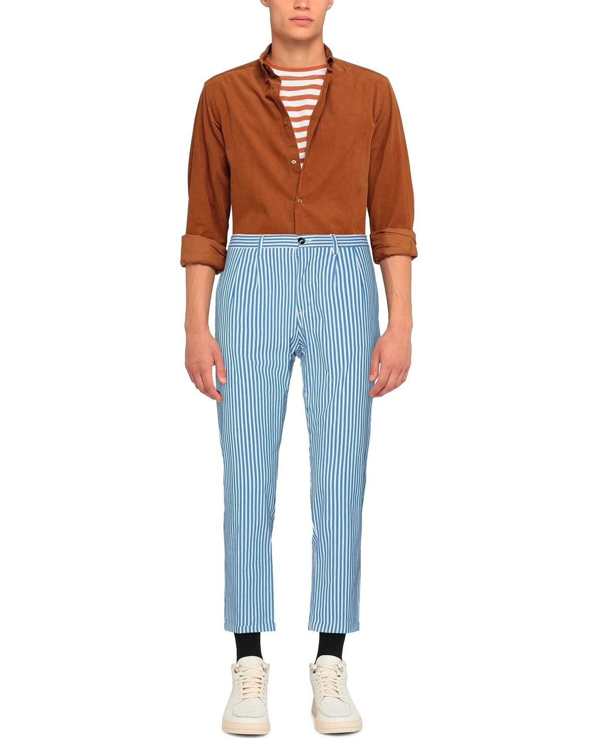 Полотняное переплетение, логотип бренда, полоски, средняя посадка, зауженная брючина, стандартная посадка, пуговицы, манжеты по краям, множество карманов, стрейч