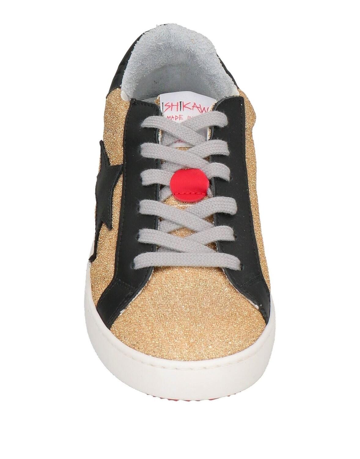 Полотняное переплетение, кожа, ламе, эффект ламинирования, блестки, двухцветный цвет, кожаная подкладка, шнуровка, скругленный носок, плоская поверхность, подошва с резиновым тиснением, содержит нетекстильные части животного происхождения, низкие кеды и кроссовки