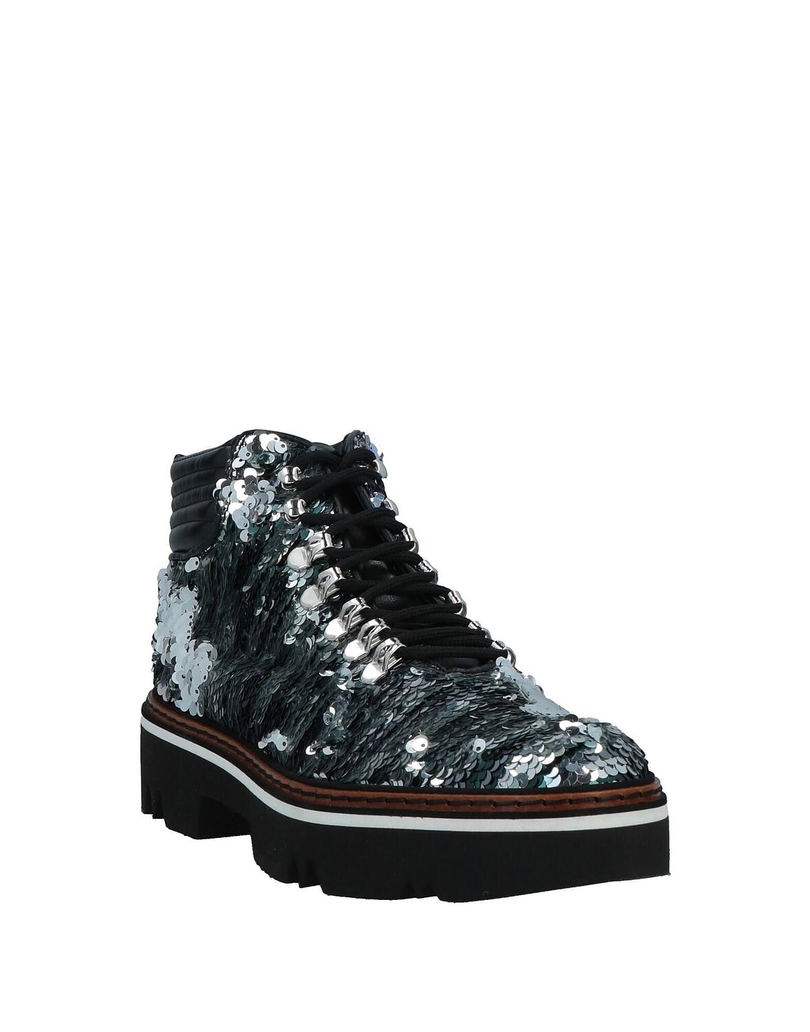 Ботильоны на шнуровке, металлик, пайетки, двухцветный, кожаная подкладка, шнуровка, круглый носок, квадратный каблук, резиновый каблук, резиновая подошва, содержит нетекстильные части животного происхождения