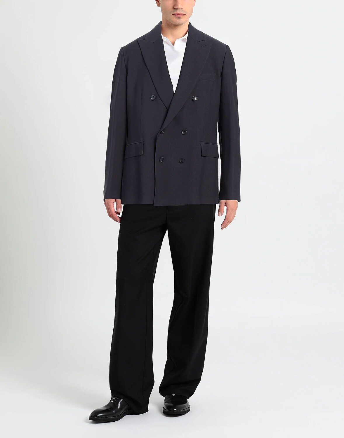Двубортный пиджак, ткань, без аппликаций, одноцветное изделие, воротник с лацканами, длинные рукава, внутри на подкладке, карманы с клапанами, двойная шлица сзади, химчистка, нельзя отбеливать, нельзя сушить в стиральной машине