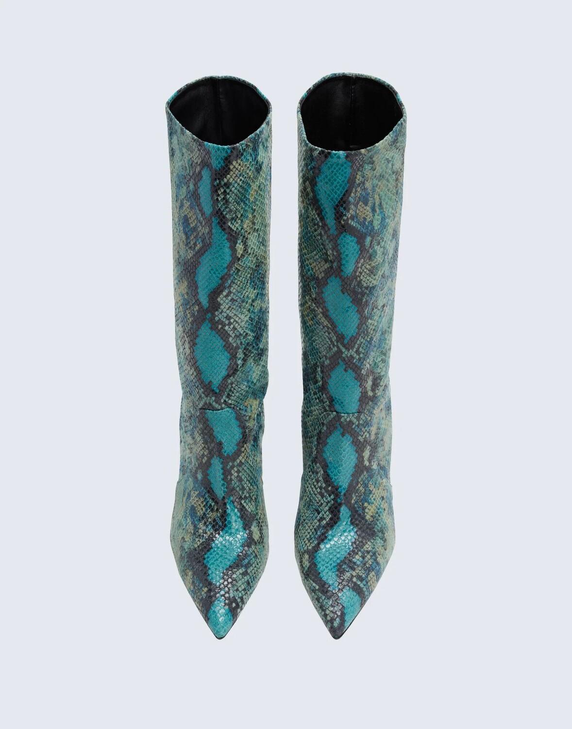 Принт под змеиную кожу, без аппликаций, разноцветный рисунок, подкладка из кожи, узкий носок, каблук-шип, резиновая подошва, содержит нетекстильные части животного происхождения, ботинки