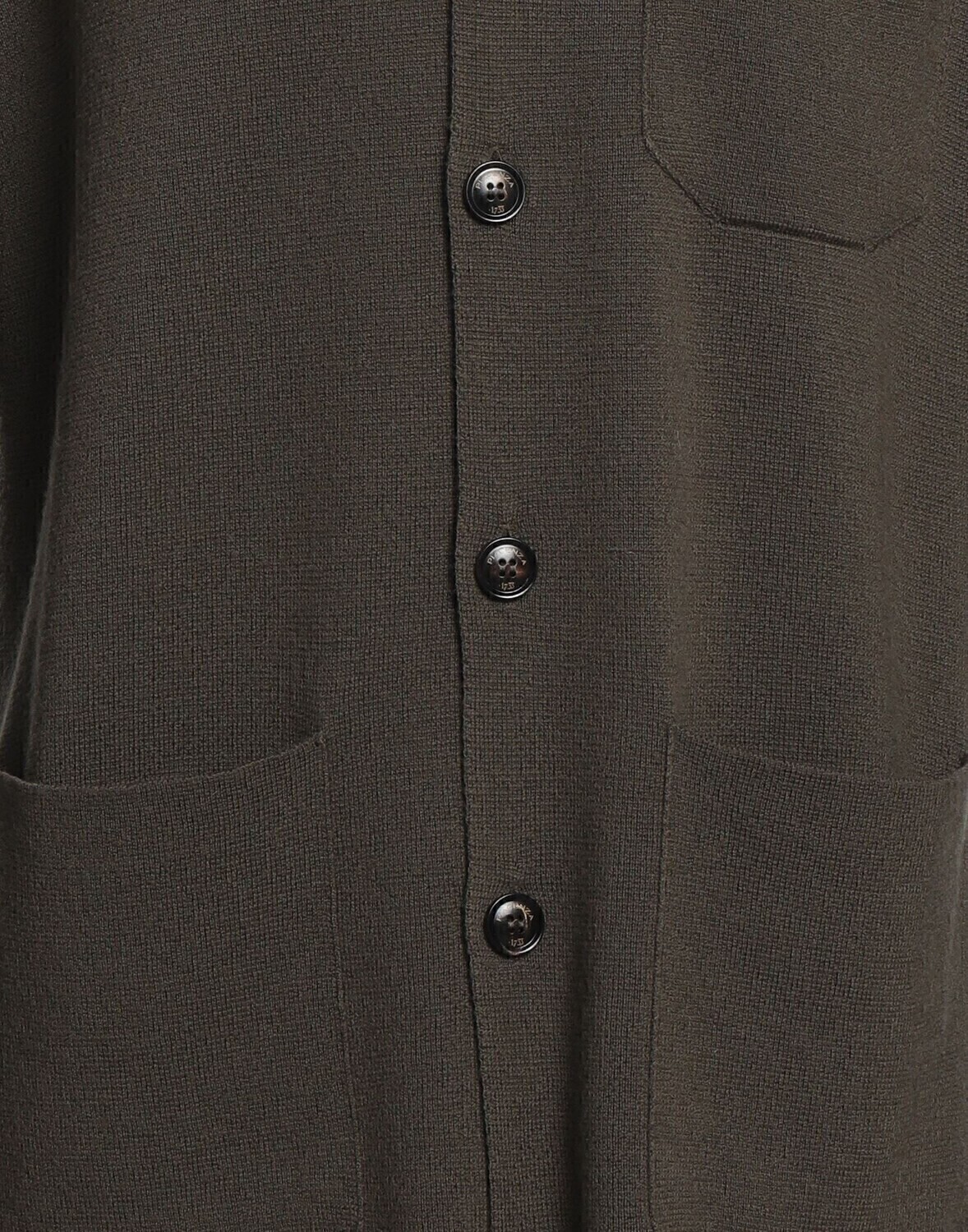 Трикотаж, легкая вязка, логотип бренда, одноцветное изделие, классический вырез горловины, длинные рукава, пуговицы, множество карманов