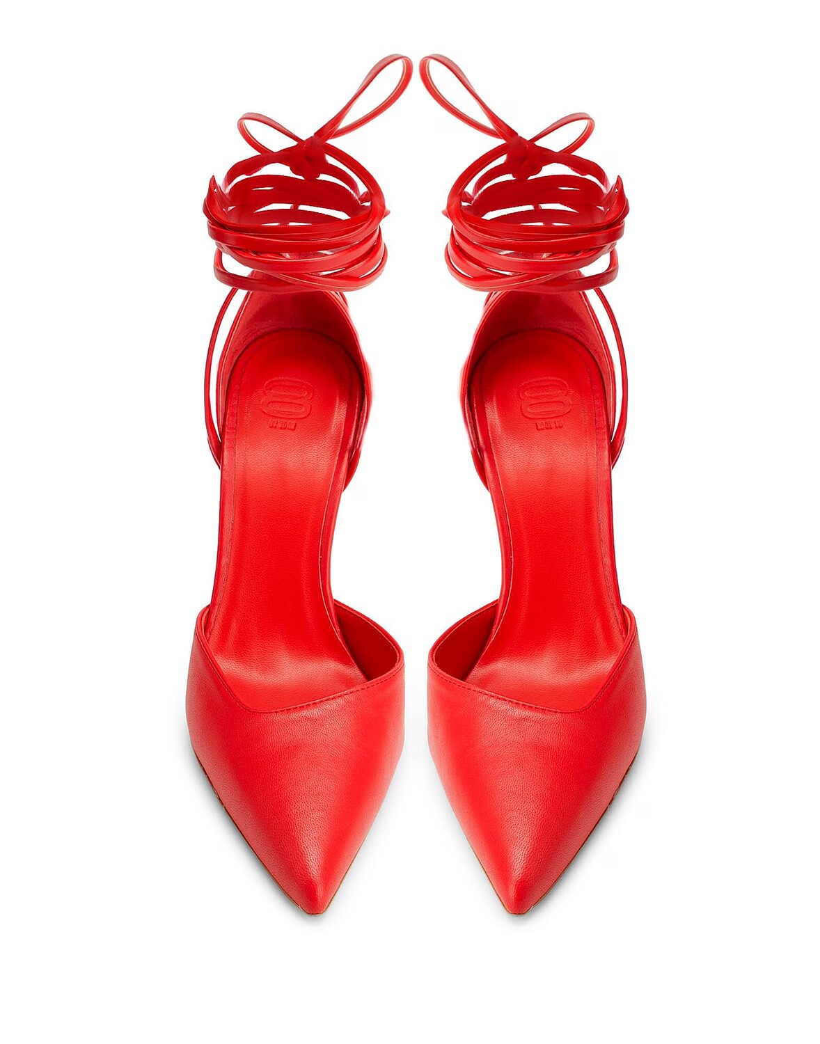 Эти простые туфли, сделанные в Италии, украшены каблуком-шпилькой в ​​тон. Модель с острым носком, изящными завязками на щиколотке и кожаной подошвой.