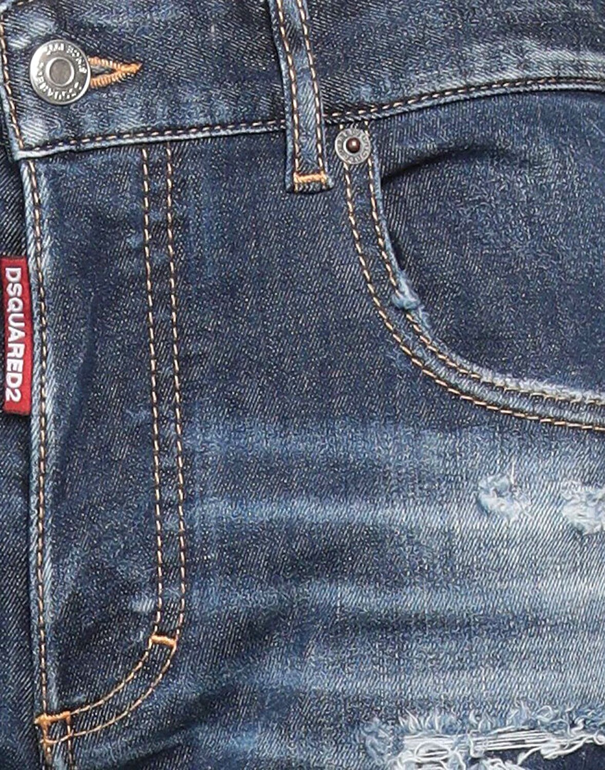 Джинсовая ткань, потертые, выцветшие, логотип бренда, кожаная отделка, одноцветное изделие, темный цвет, средняя посадка, петли для ремня, зауженные брючины, стандартная посадка, застежка на пуговицы, пять карманов, стрейч, машинная стирка или химчистка, нельзя сушить в стиральной машине, не подвергать сушке не отбеливается, содержит нетекстильные части животного происхождения, модель прямого кроя