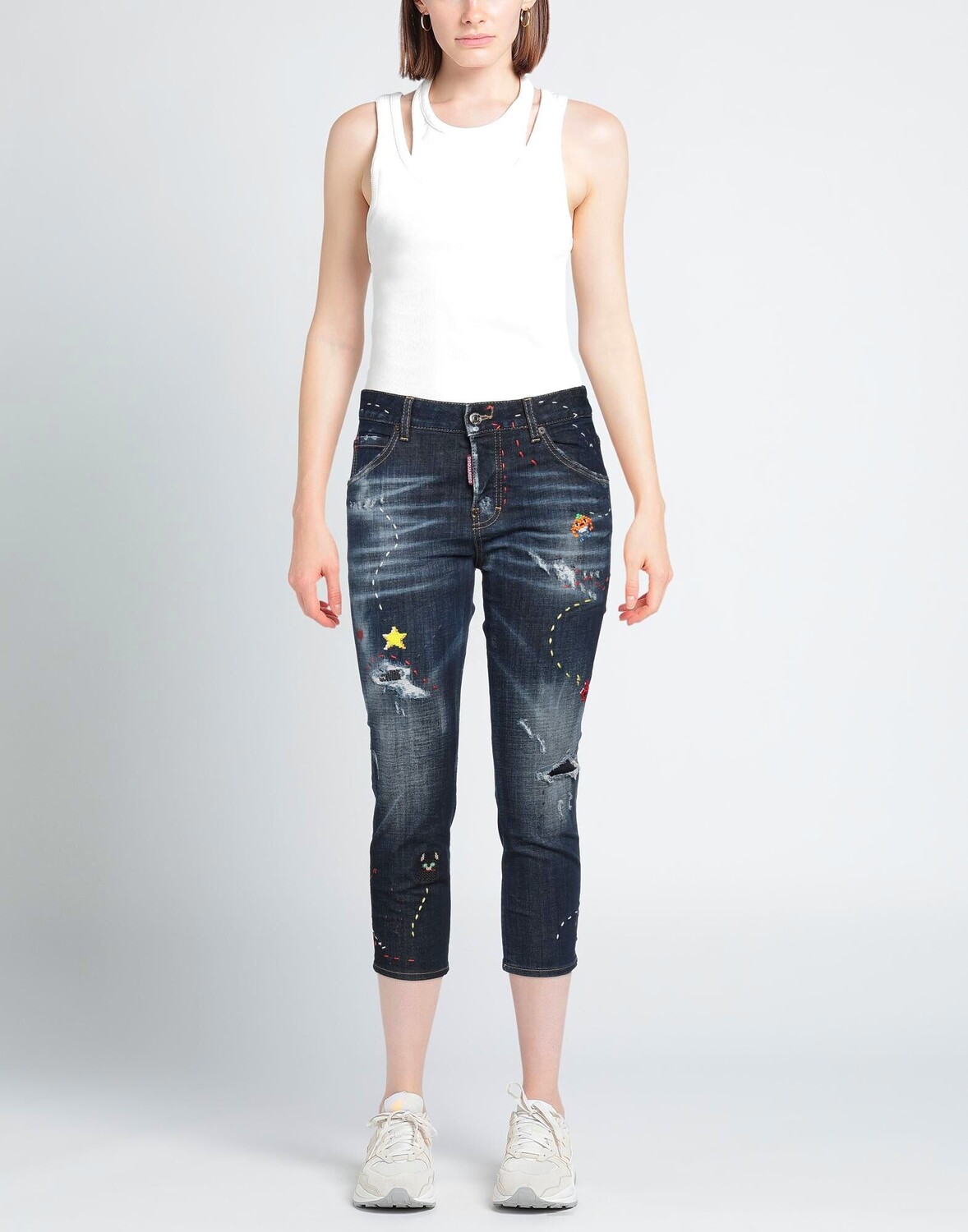 Деним, выцветший, потертый, логотип бренда, вышивка, многоцветный, темная стирка, завышенная талия, стандартный крой, потайные пуговицы, множество карманов, машинная стирка или химчистка, нельзя отбеливать, нельзя сушить в стиральной машине, зауженные джинсы