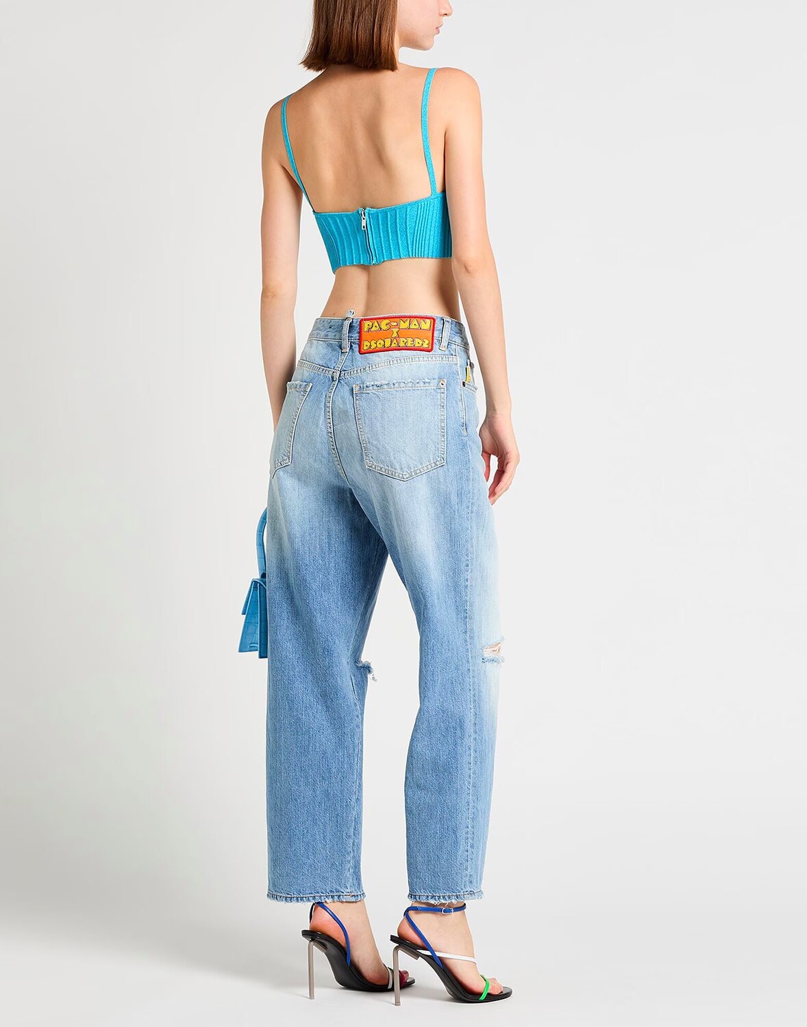 Деним, потертости, потертости, логотип бренда, вышивка, одноцветное изделие с принтом, легкая стирка, завышенная талия, шлевки для ремня, стандартный крой, застежка на пуговицы, множество карманов, машинная стирка, нельзя отбеливать, нельзя сушить в машине, джинсы прямого кроя