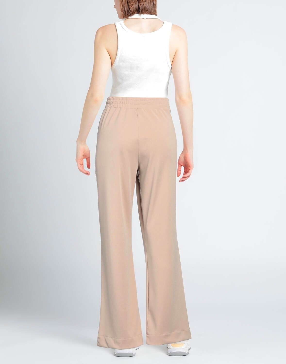 Джерси, логотип бренда, одноцветное изделие, завышенная талия, резинка на талии, свободный крой, множество карманов, стрейч, брюки-клеш