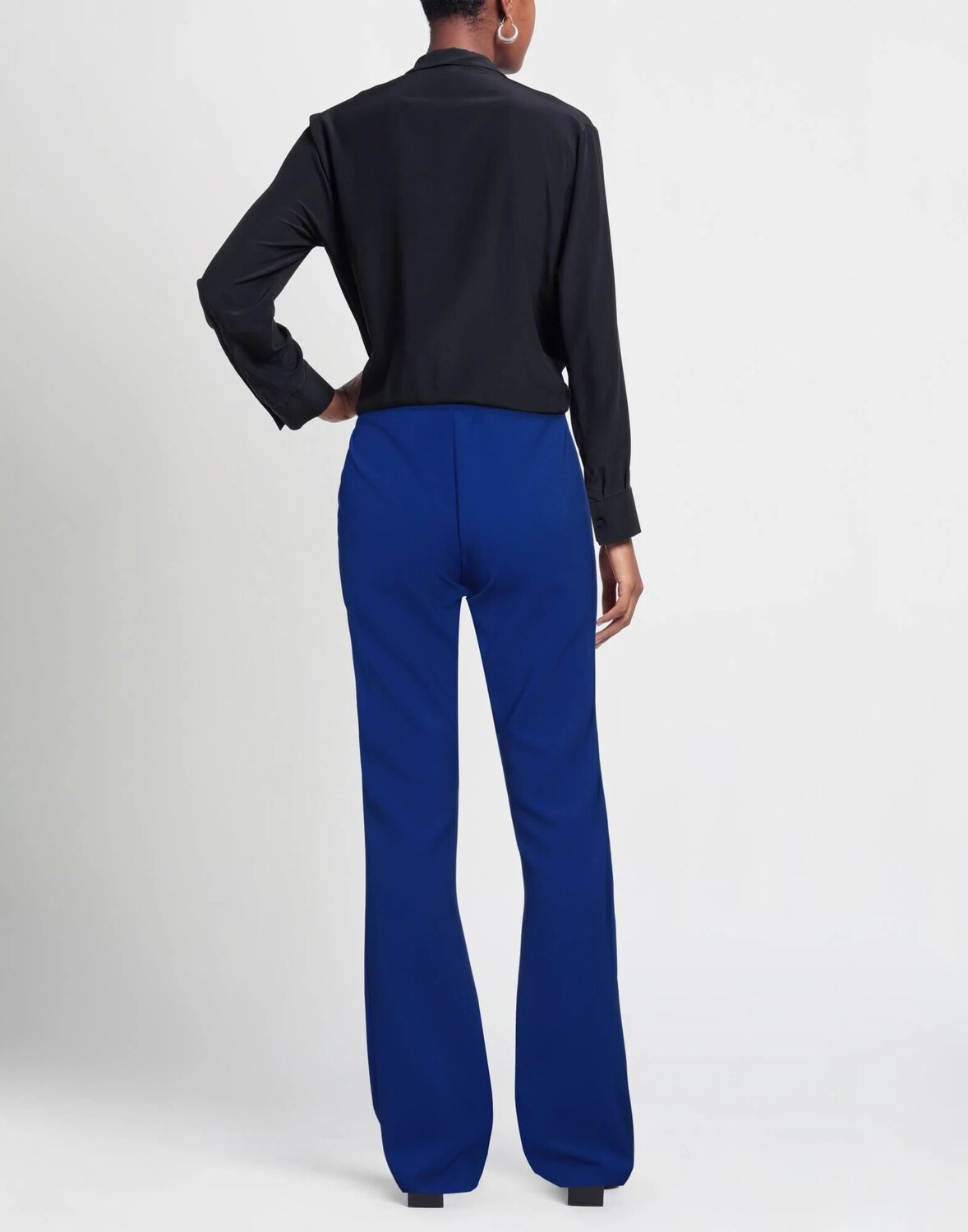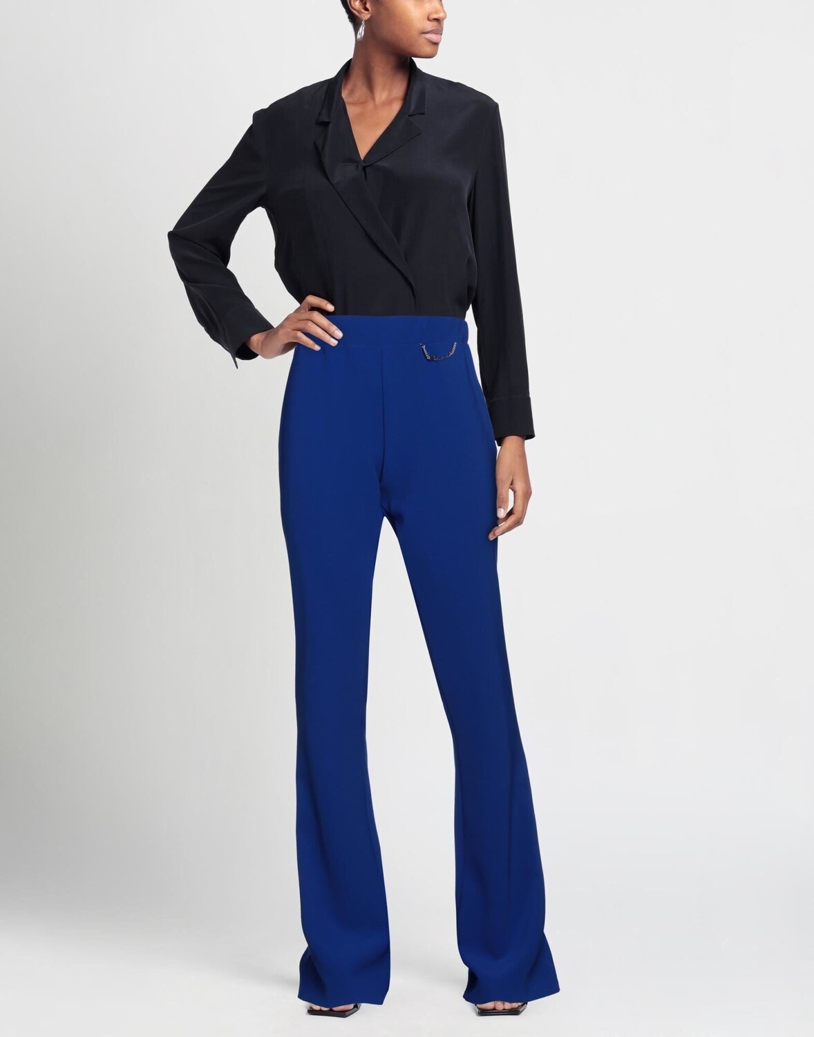 Брюки-клеш, креп, логотип бренда, декорирование, однотонное изделие с аппликациями, завышенная талия, приталенный крой, застежка-молния, без карманов, нельзя стирать, не отбеливать, нельзя сушить в стиральной машине