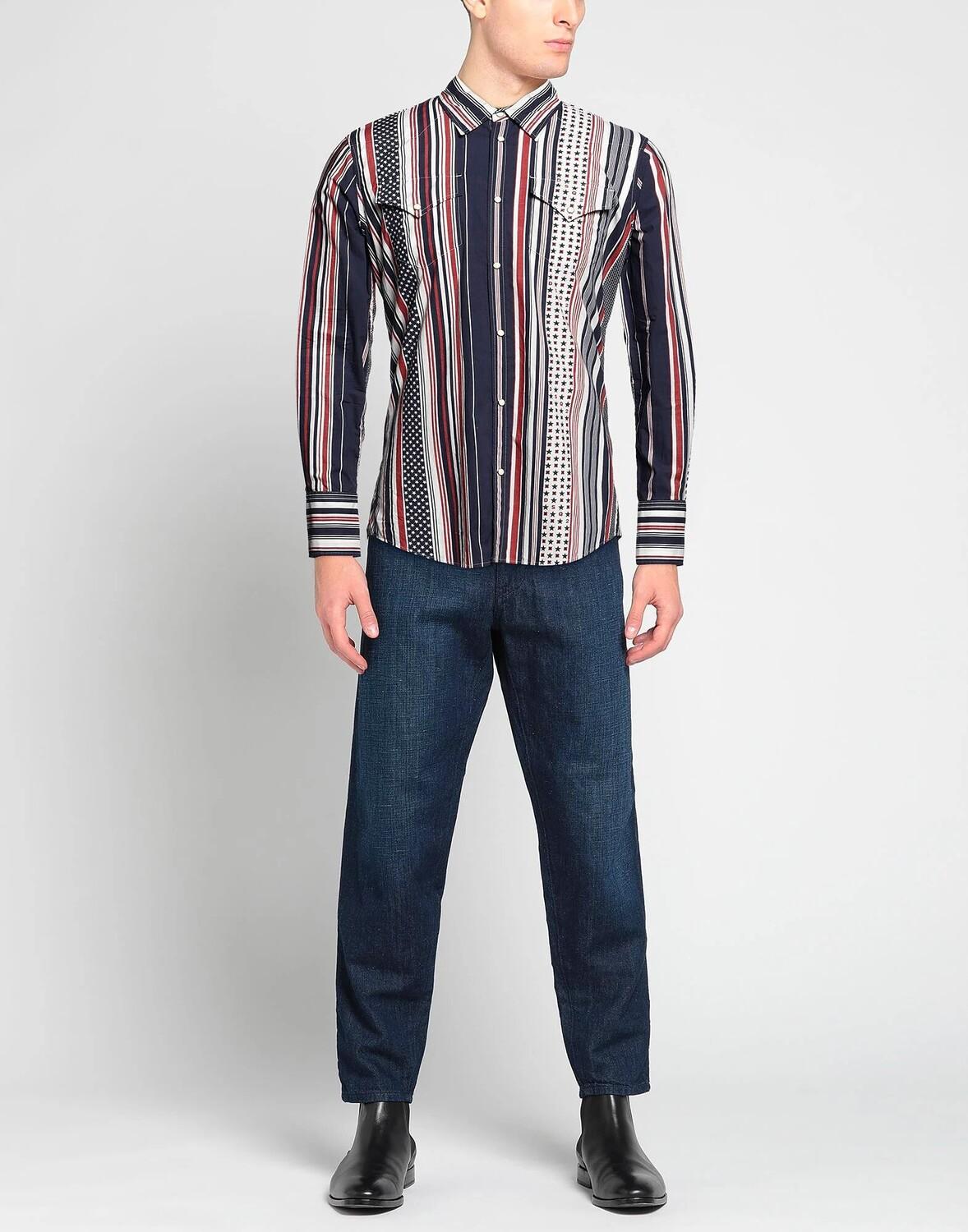 Тканый материал, логотип бренда, в полоску, многоцветный, классический воротник, длинные рукава, кнопки, два нагрудных кармана, машинная стирка, нельзя отбеливать, нельзя сушить в стиральной машине, рубашка стандартного кроя