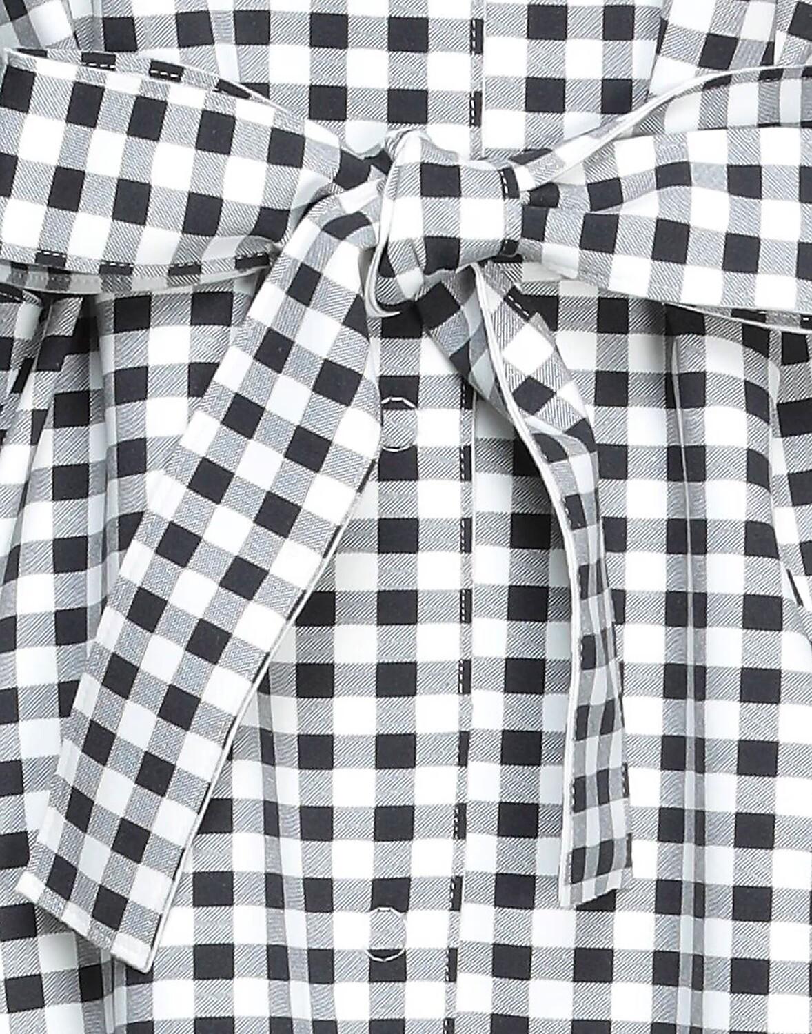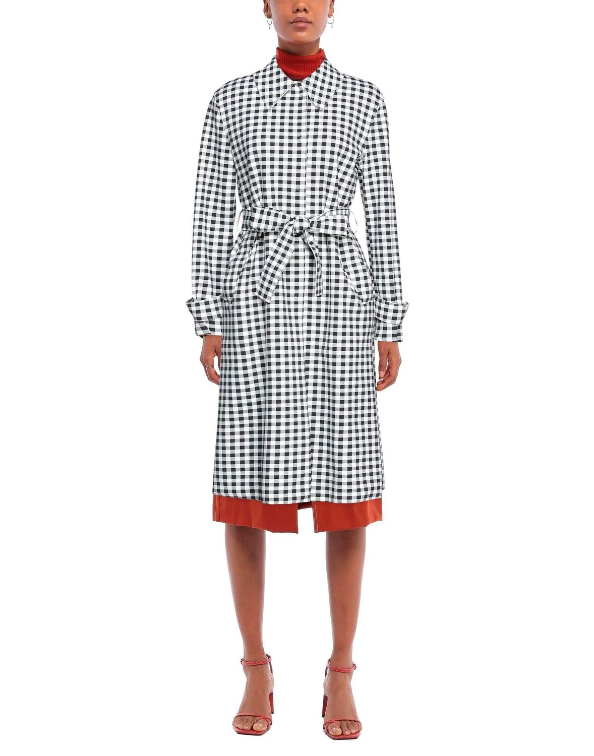 Джерси, полупояс, клетка, классический вырез, однобортный, длинные рукава, без подкладки, застежка на кнопки, пояс на талии, множество карманов, стрейч