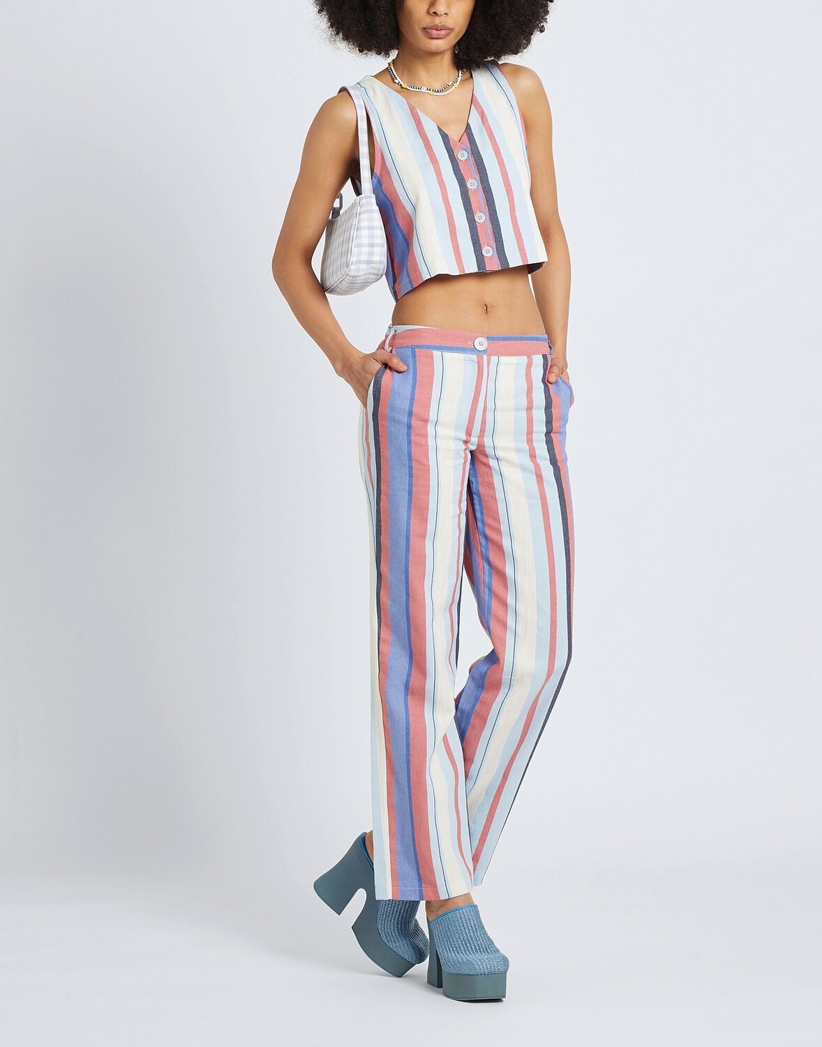 Полотняное переплетение, без аппликаций, полоски, средняя посадка, шлевки для ремня, прямые брючины, стандартный крой, застежка-молния, 1 пуговица, множество карманов, брюки чинос. Это изделие содержит цифровой идентификатор, что означает, что вы можете открыть для себя целый мир эксклюзивного контента о своем изделии; отсканируйте QR-код на этикетке по уходу за товаром.