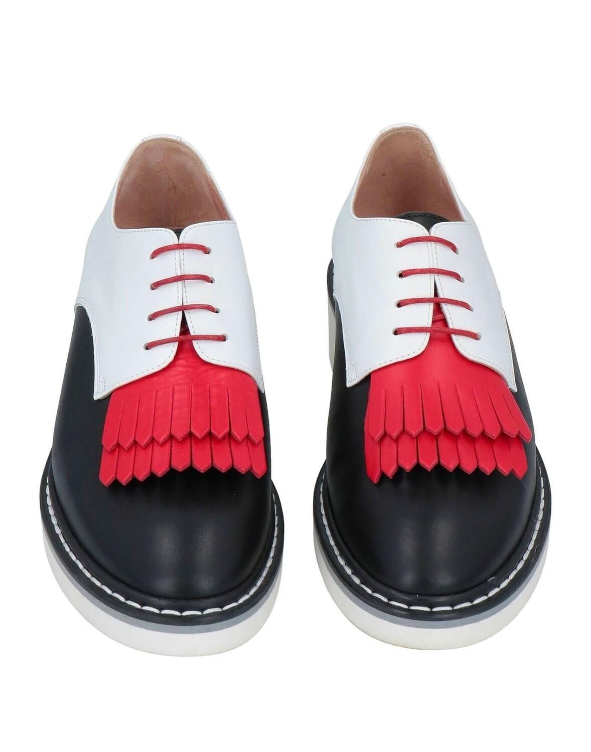Кожа, бахрома, разноцветный узор, кожаная подкладка, скругленный носок, квадратный каблук, резиновая подошва, содержит нетекстильные части животного происхождения, дерби