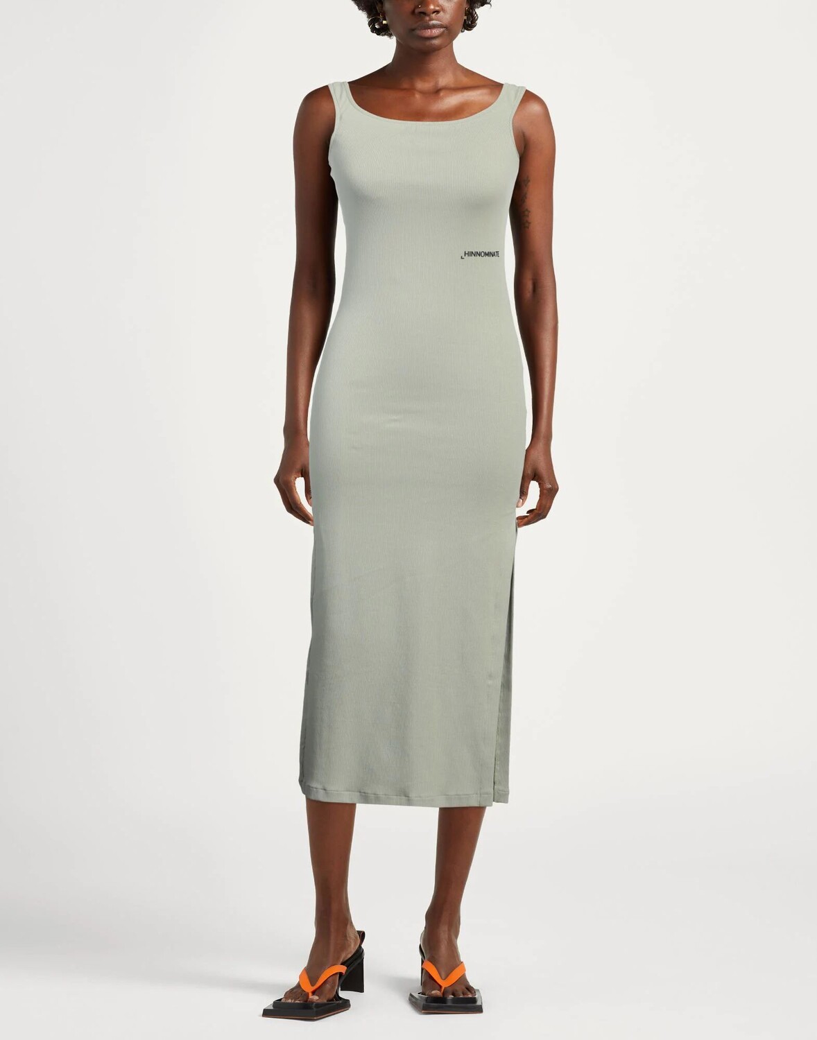 Расклешенное платье, трикотаж, в рубчик, логотип бренда, одноцветное изделие, круглый вырез, без рукавов, без карманов, стрейч, ручная стирка или химчистка, нельзя отбеливать, нельзя сушить в стиральной машине